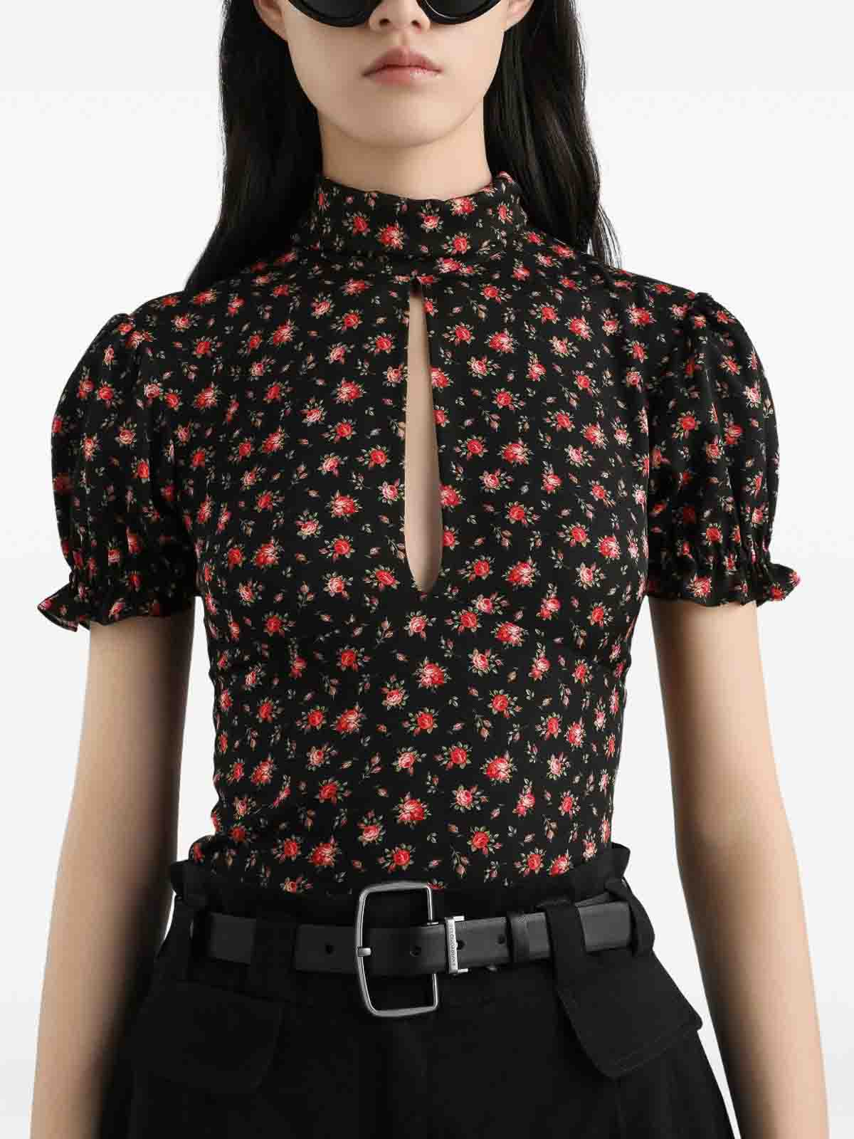 DOLCE & GABBANA: blouses - Black Blouse In Silk With Flower Print