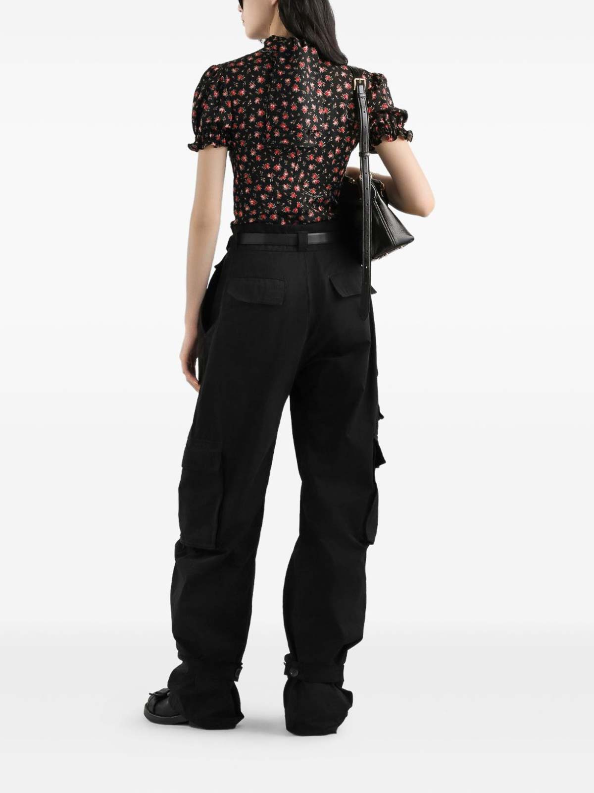 Black Blouse In Silk With Flower Print