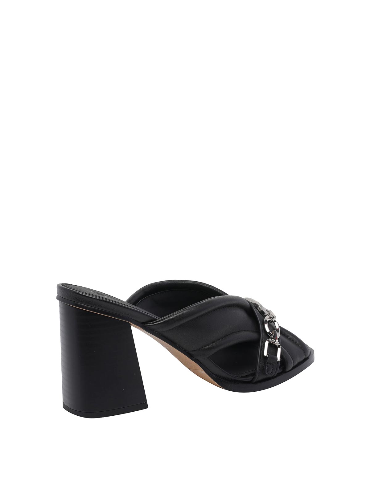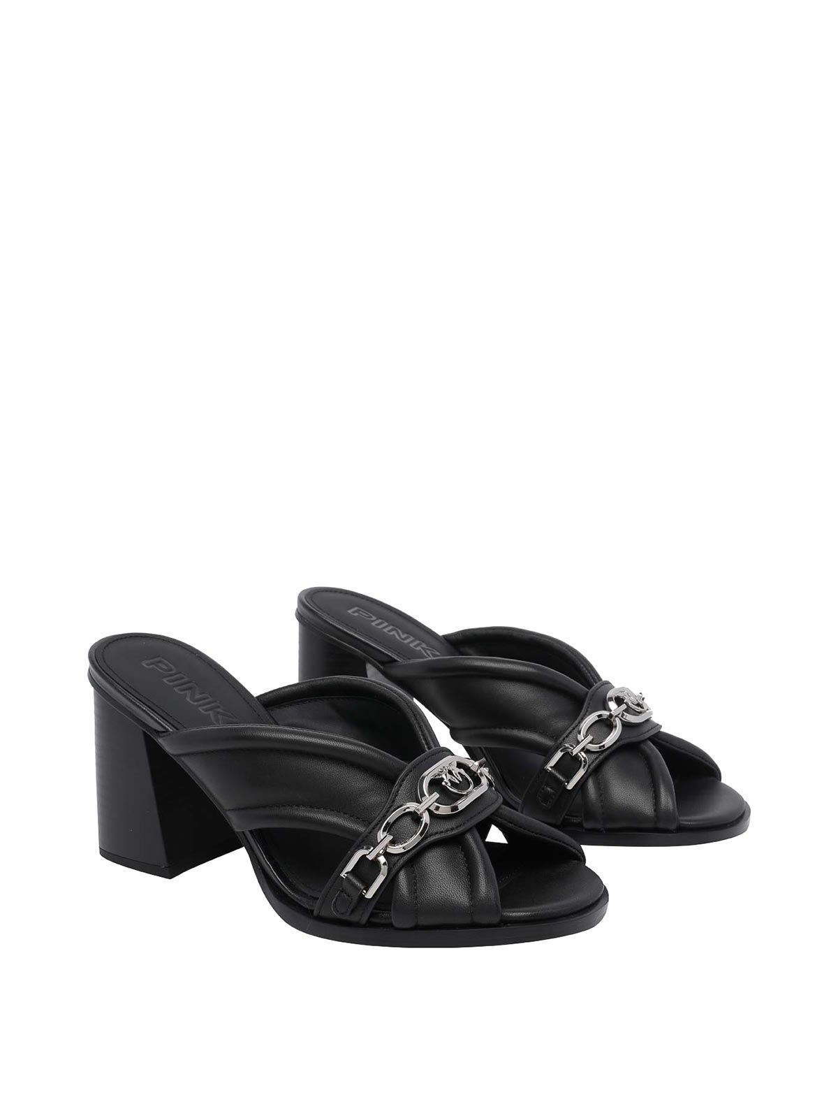 Pinko black lara pump sandals, round toe, chain detail, leather upper