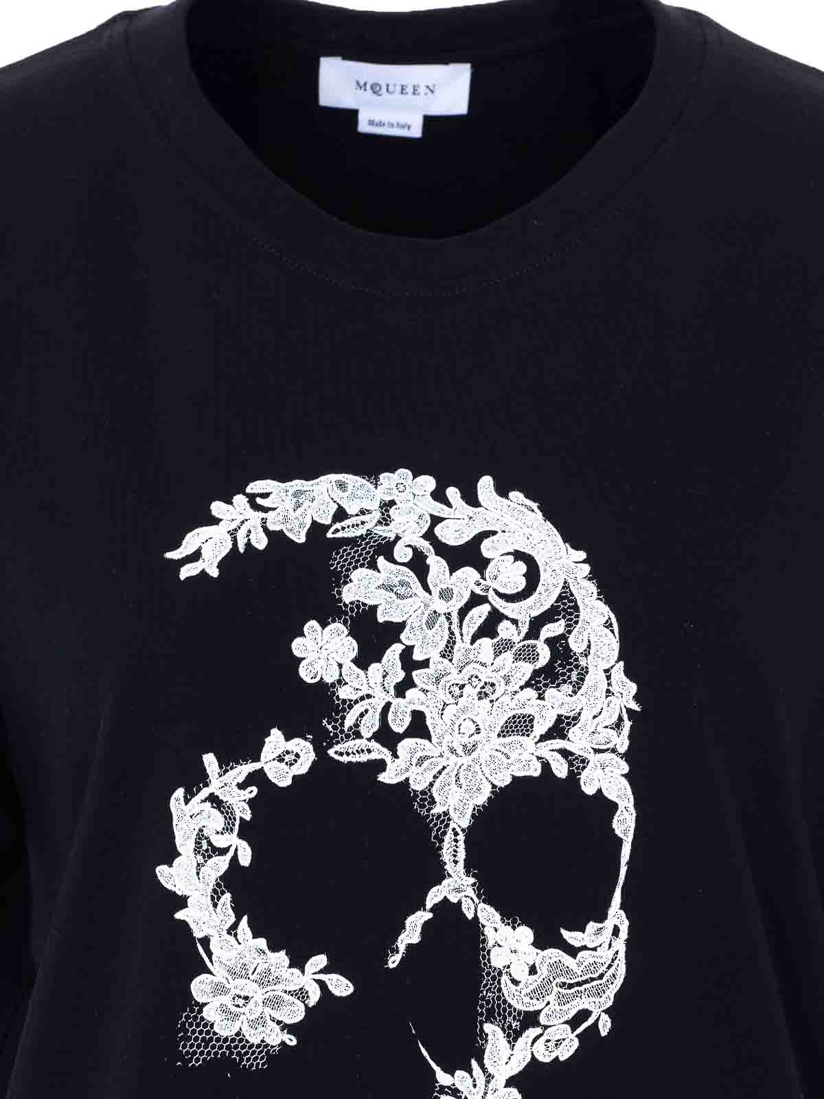 Mcqueen black t-shirt, crewneck, print logo , lace detail on the front