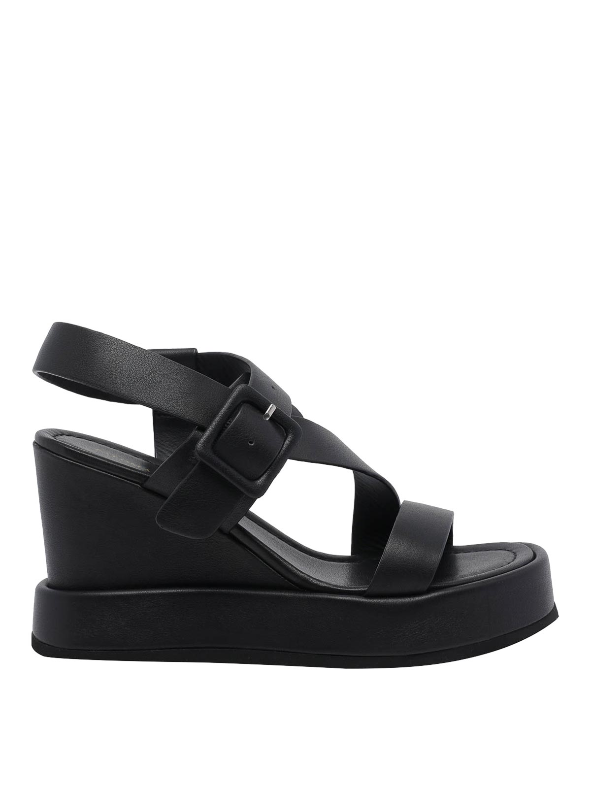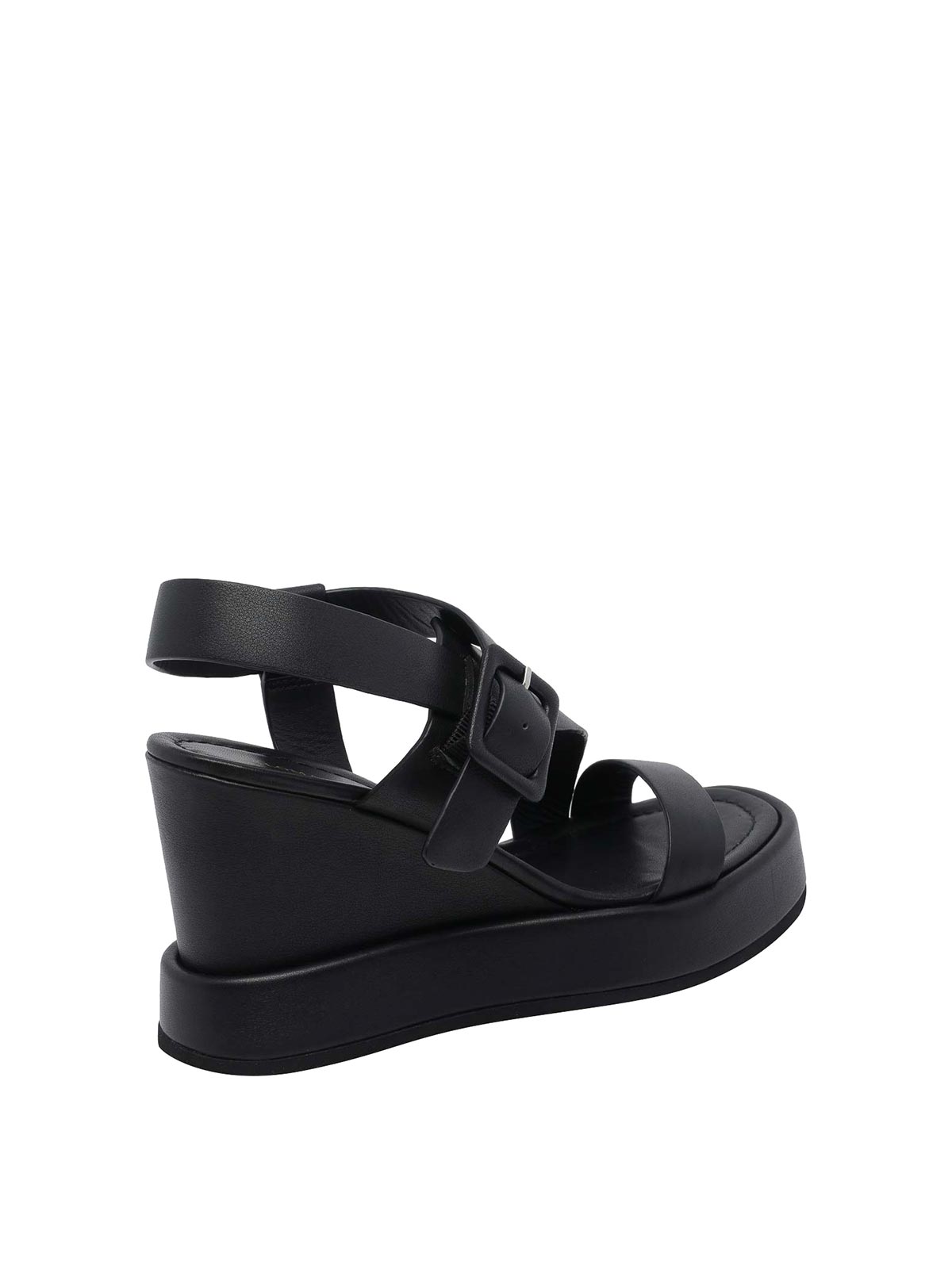 Paloma barcelo' black tessa nappa wedges, buckle closure, leather upper, open round toe