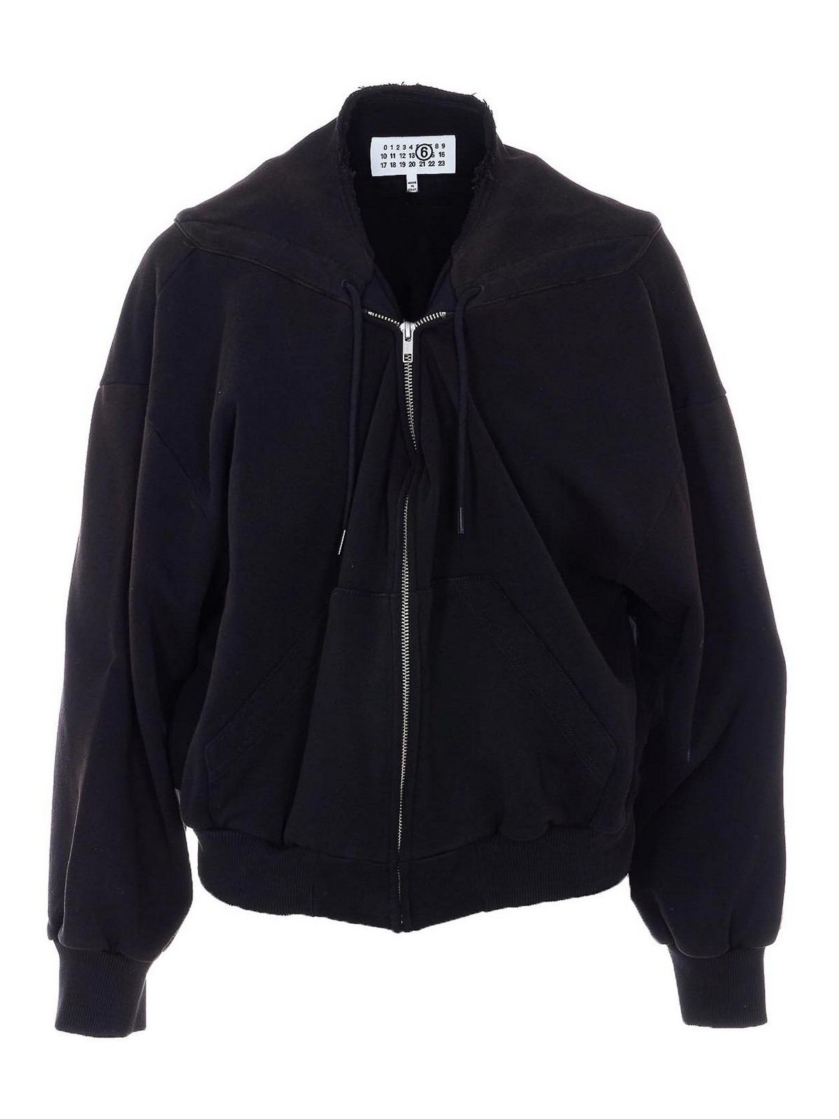 MM6 MAISON MARGIELA: Sweatshirts & Sweaters - Black Zip Up Sweatshirt