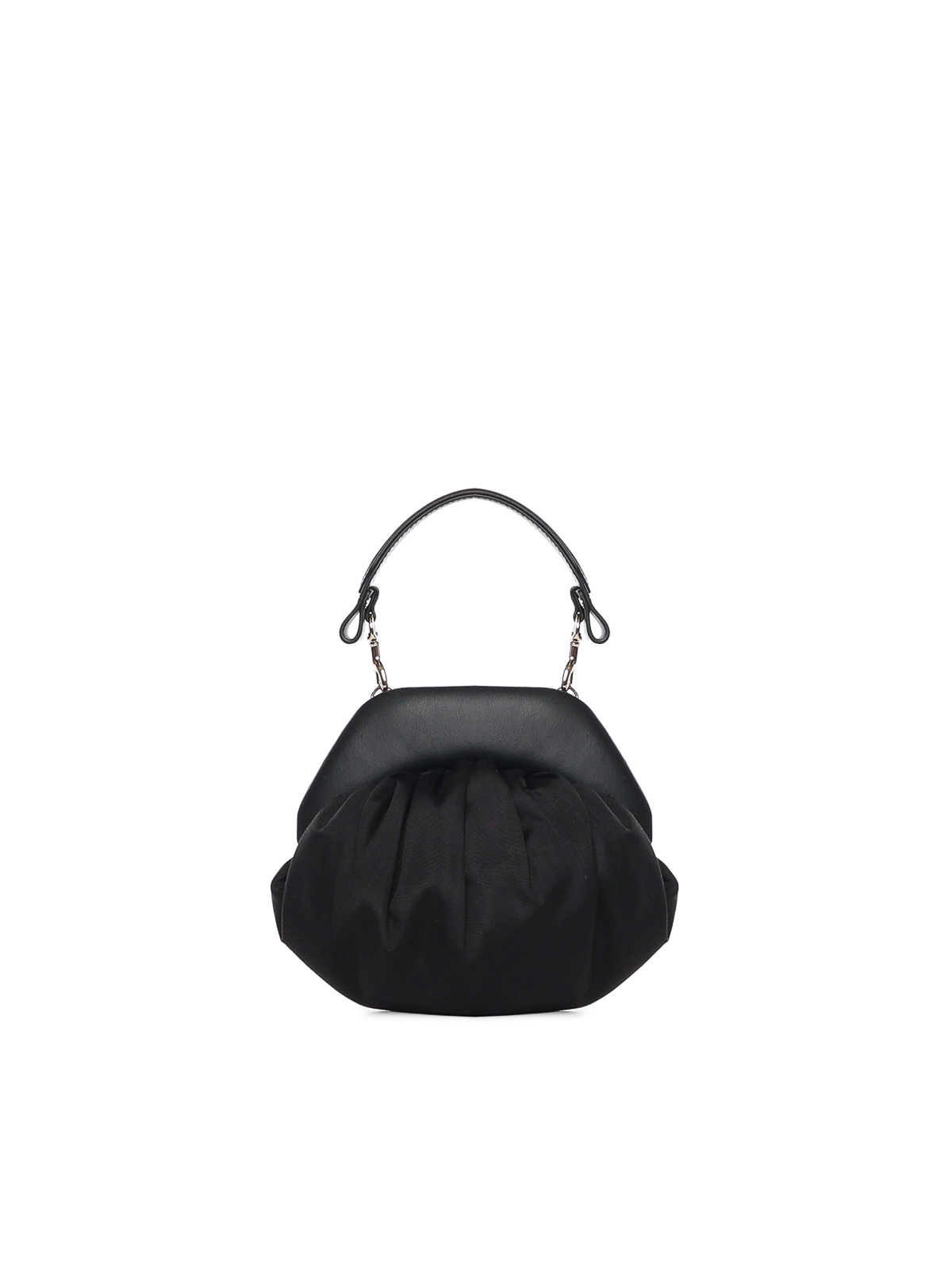 made of viscose, magnetic closure, adjustable and removable shoulder strap, removable top handle, dimensions: 21 x 21 x 8 cm, color: black