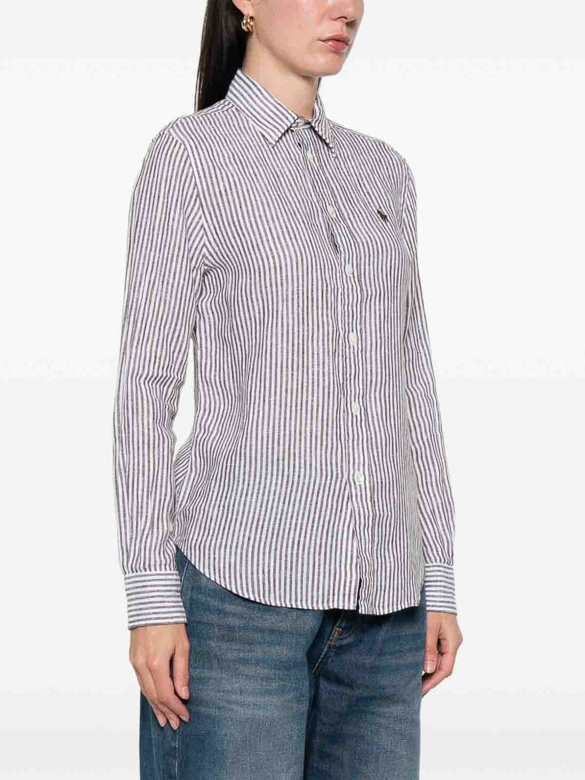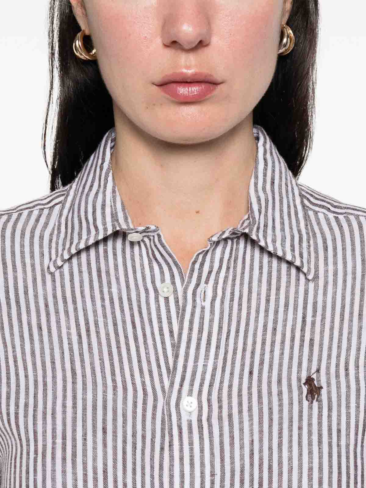 POLO RALPH LAUREN: shirts - Brown And White Striped Linen Shirt