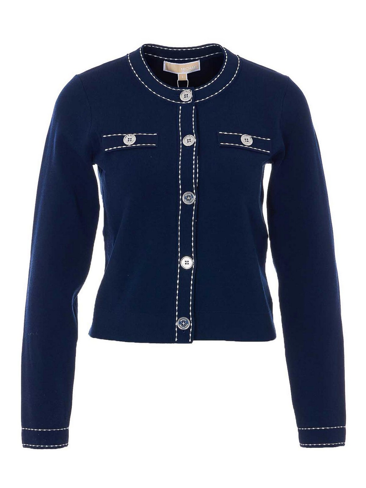 Michael michael kors blue cardigan with frontal buttons closure, crewneck, long sleeve