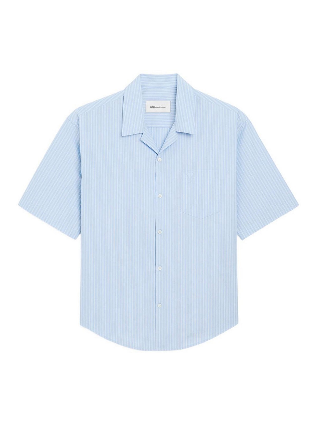 Features blue and white striped pattern embroidery on the chest Cuban collar buttons short sleeves composition 100% cotton, 100% mother of pearl.
