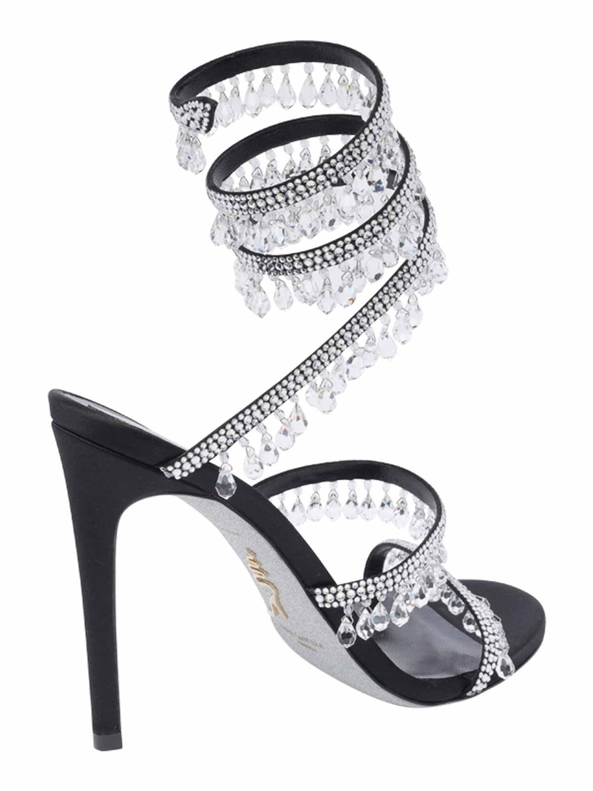 Rene caovilla chandelier sandals, open toe, crystals details, stiletto heels, fabric upper, leather sole