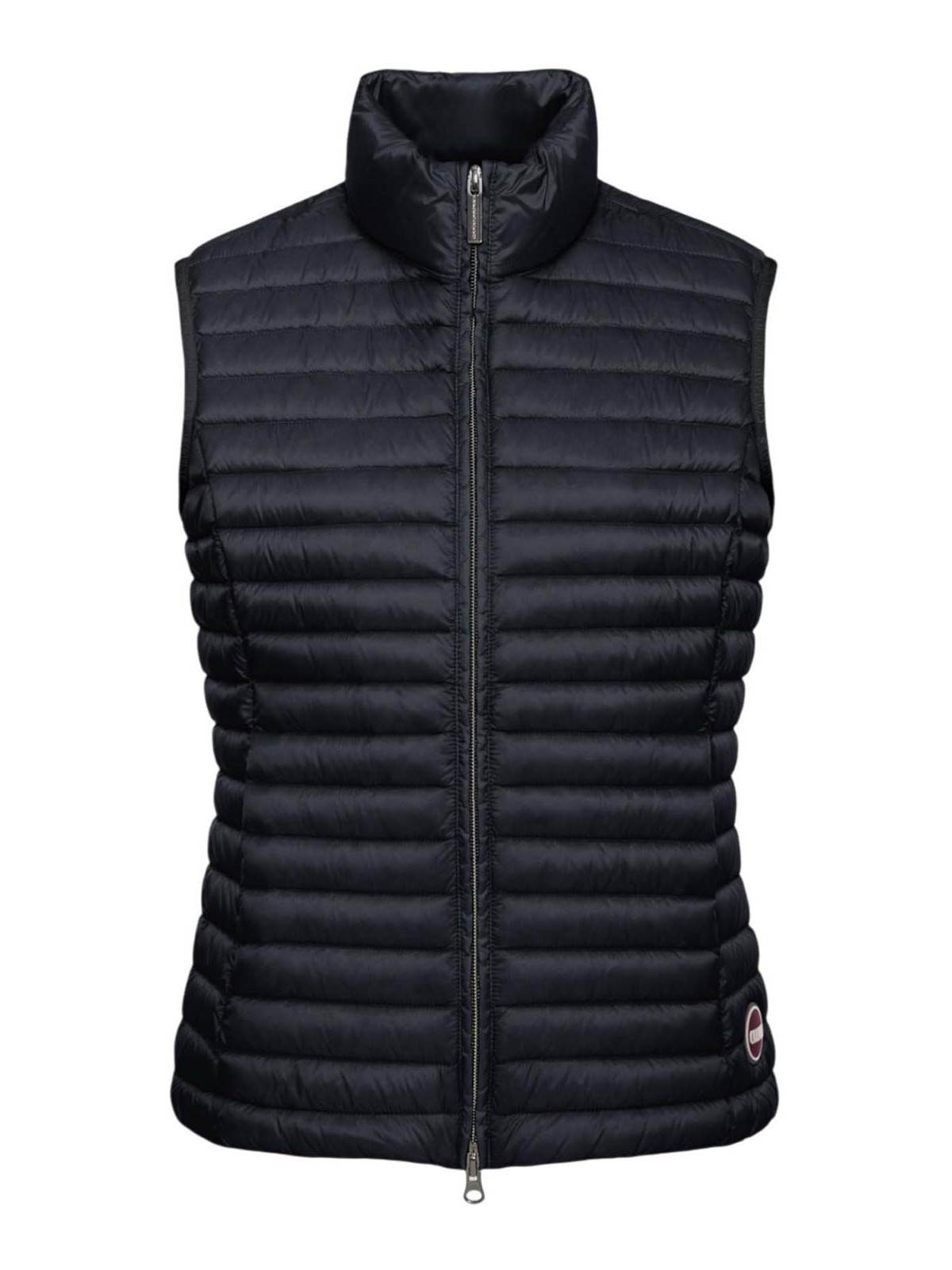 Colmar originals black light down vest, 100 gram women's vest designed for mid-season, ideal for layering and to complete dynamic and versatile looks. the lightweight construction with natural down padding ensures protection without weighing you down, maintaining a sporty and essential aesthetic. the double-slider zip closure and the side zip pockets guarantee functionality, while the drawstring on the bottom allows you to adjust the width for a personalized fit. the logoed elastic tape on the armhole adds stability and character. the model completed by the colmar originals logo on the bottom and the c patch applied on the back. 100 gram model double slider zip closure side pockets with zip adjustable drawstring on the bottom logoed elastic tape on the armhole padding in light natural feather 100% recycled fabric Colmar Originals logo on the bottom C patch on the back regular fit, external fabric composition: 100% polyamide lining: 100% polyamide padding: 90% duck down 10% duck feather