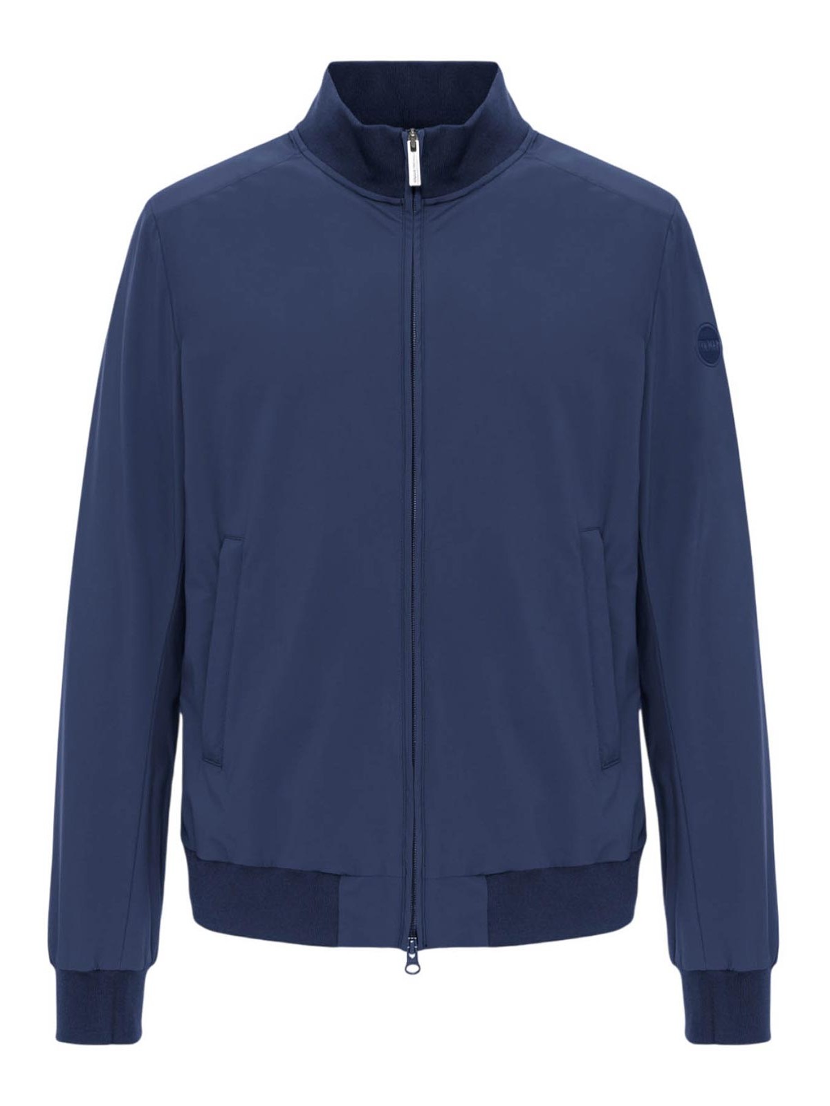 Colmar originals navy blue stretch unlined jacket, men's jacket made of soft warp-knit jersey in matt microfibre, designed to guarantee stretch comfort and practicality in the mid-seasons. the high percentage of elast.mes r ensures elasticity and freedom of movement, maintaining a clean and essential line. Ribbed knit collar, cuffs and hem improve the fit and adaptability of the garment, while the side zip pockets and two-way zip closure define a functional design. the model completed by the colmar originals logo on the left sleeve and the c patch applied on the back. double slider zip closure side pockets with zip ribbed knit collar, cuffs and hem stretch fabric in matt microfibre without padding colmar originals logo on the left sleeve c patch on the back regular fit, external fabric composition: 80% polyamide 20% elastane rib: 99% polyester 1% elastane