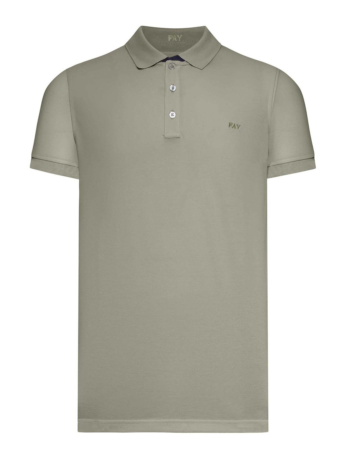 classic collar, contrasting insert on the collar, partial front buttoning, short sleeves, tone-on-tone embroidered logo, straight hem, regular fit, color: incense