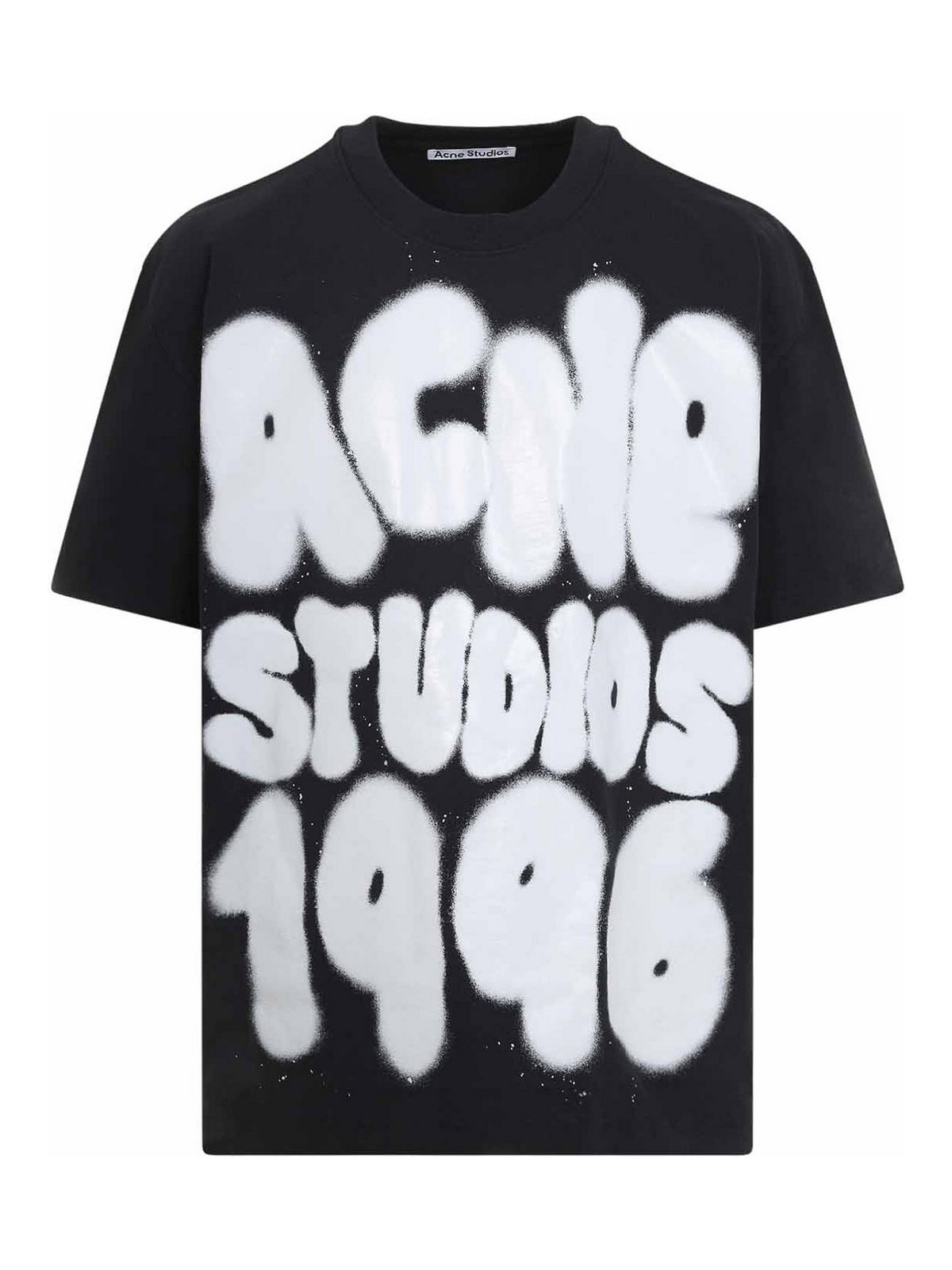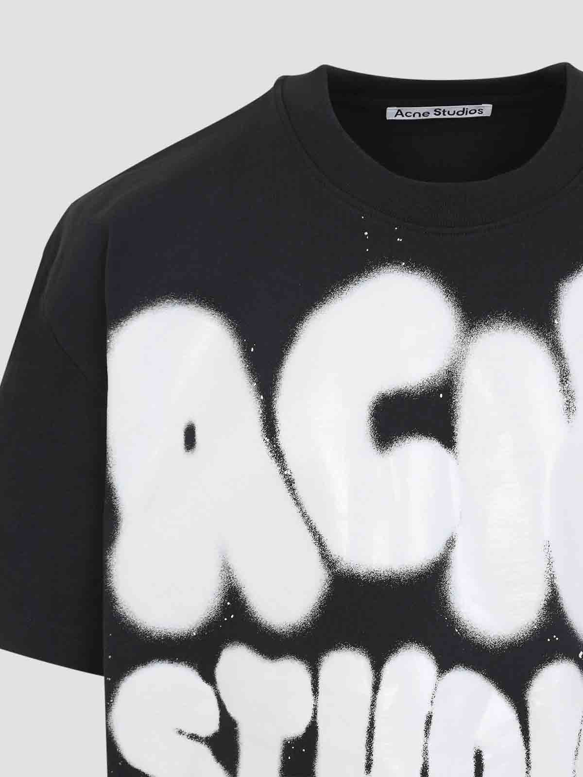 Acne studios black cotton t-shirt. black cotton jersey, round neckline, short sleeves, white contrasting graffiti logo on the front, straight hem.
