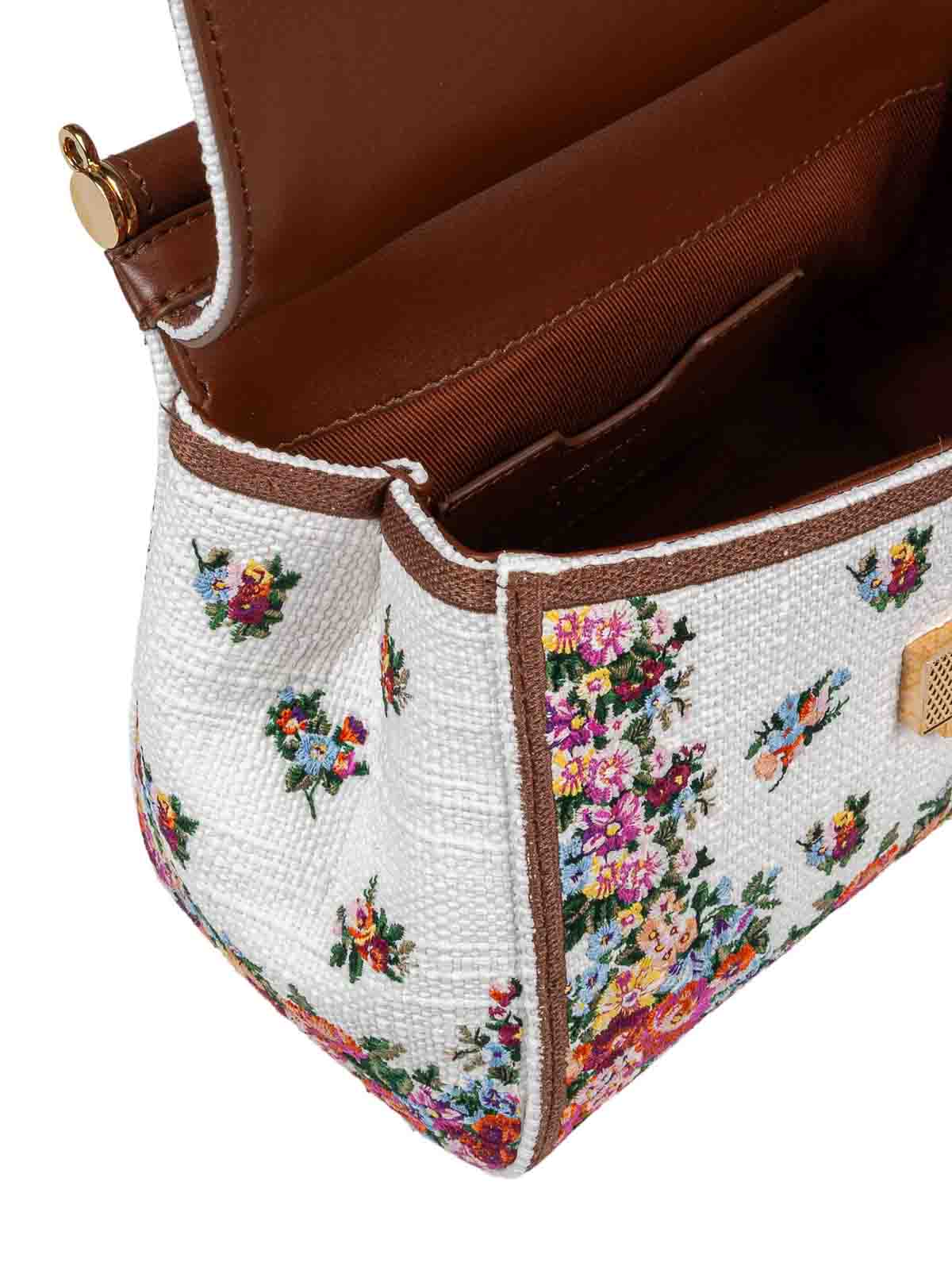 Medium Sicily handbag with removable and adjustable multicolored floral thread tuck, in vintage brass galvanic external customization with monogalvanic tag internal customization with stamp with film interior with card holder pocket and flat pocket