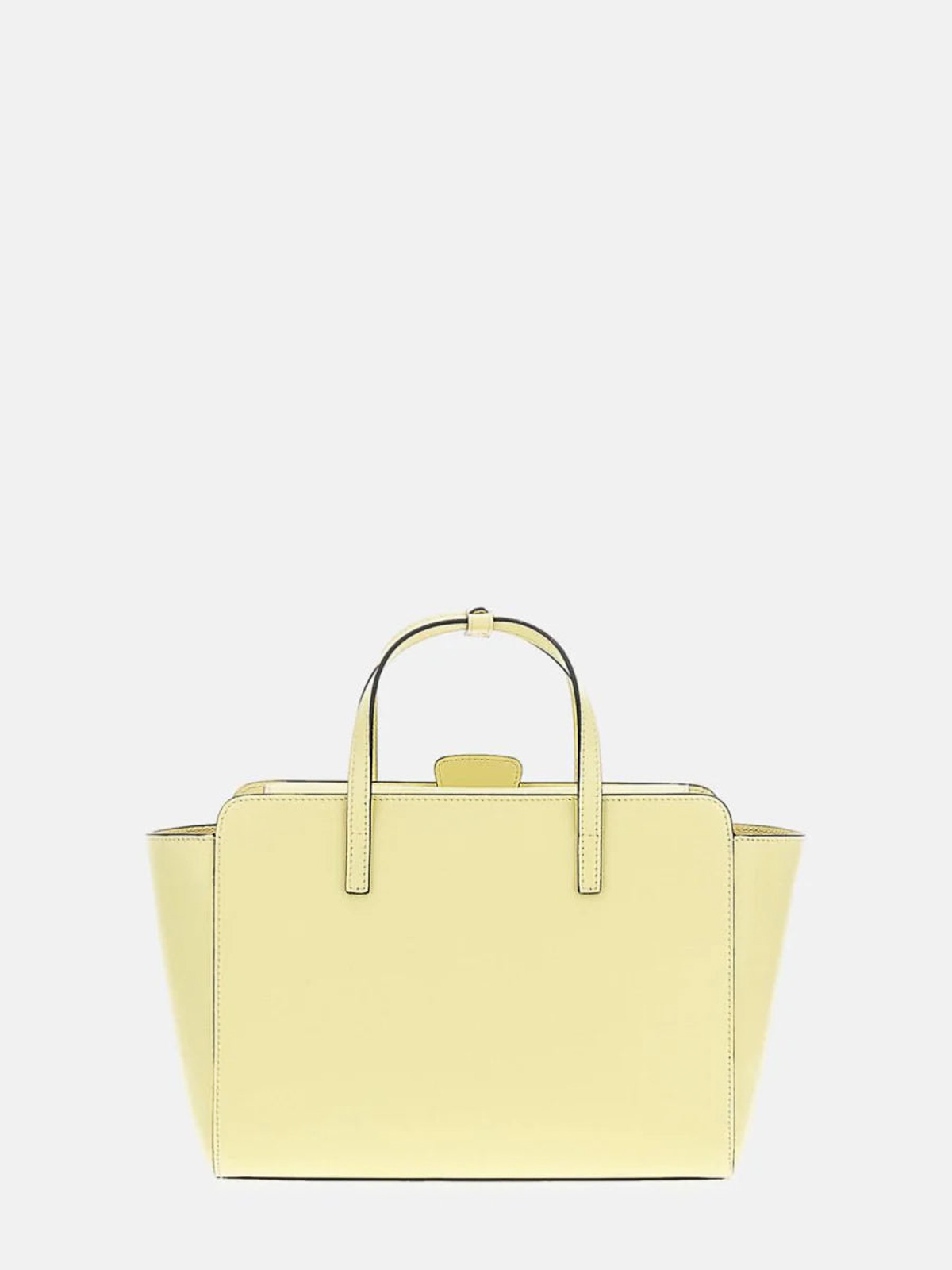 tote bag with handle, removable shoulder strap, front bellows pocket, flap closure.