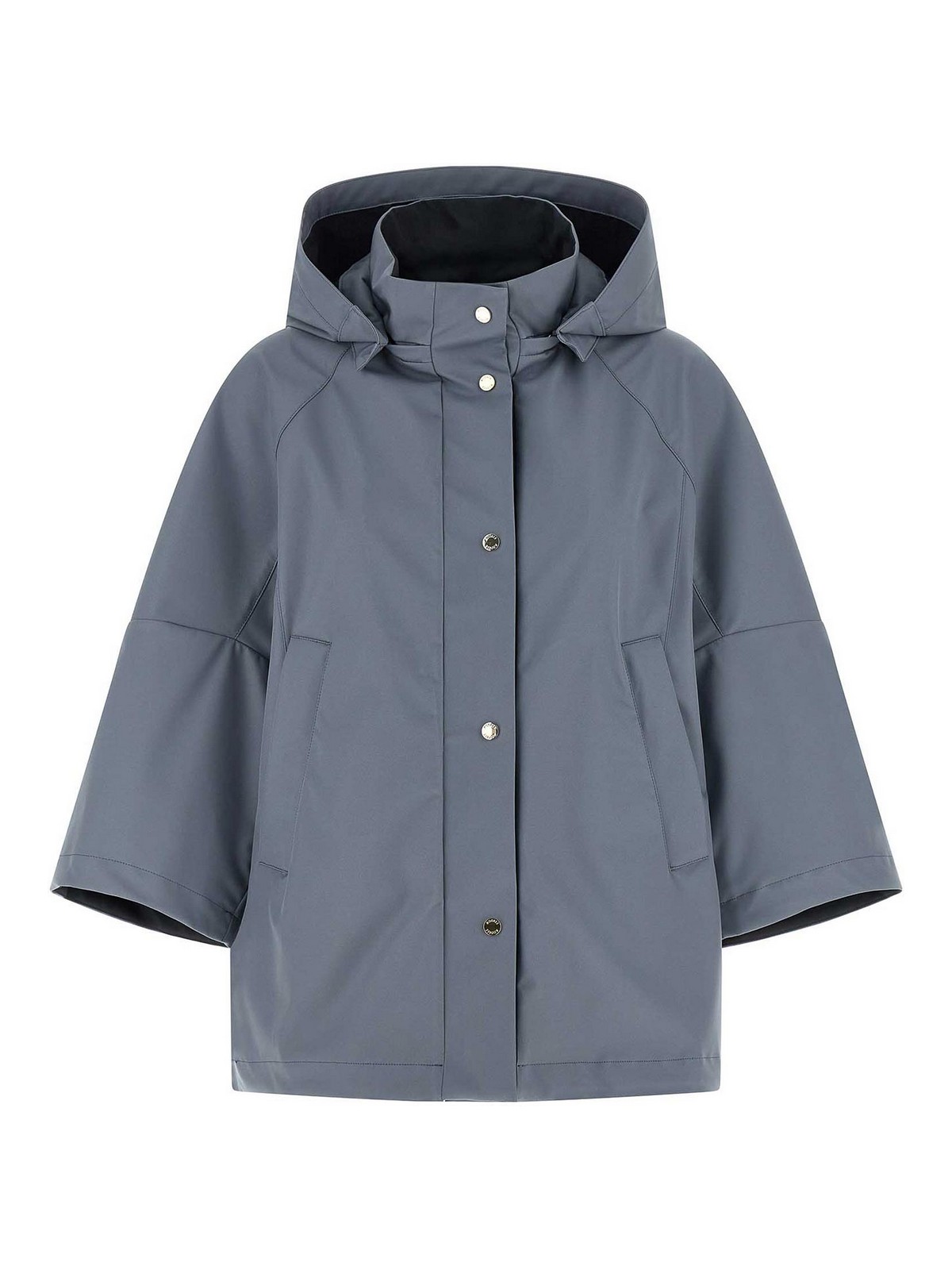 florida' jacket - 'acqua' line in water-repellent technical fabric with flared silhouette, removable hood, shirt collar, front snap button closure, pockets, 3/4 bat sleeves.