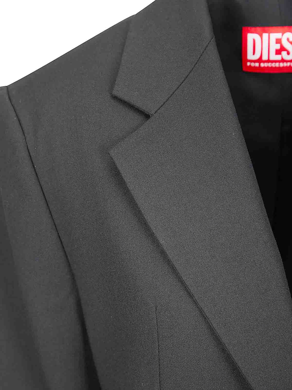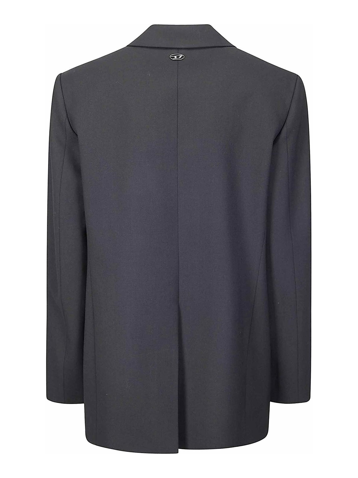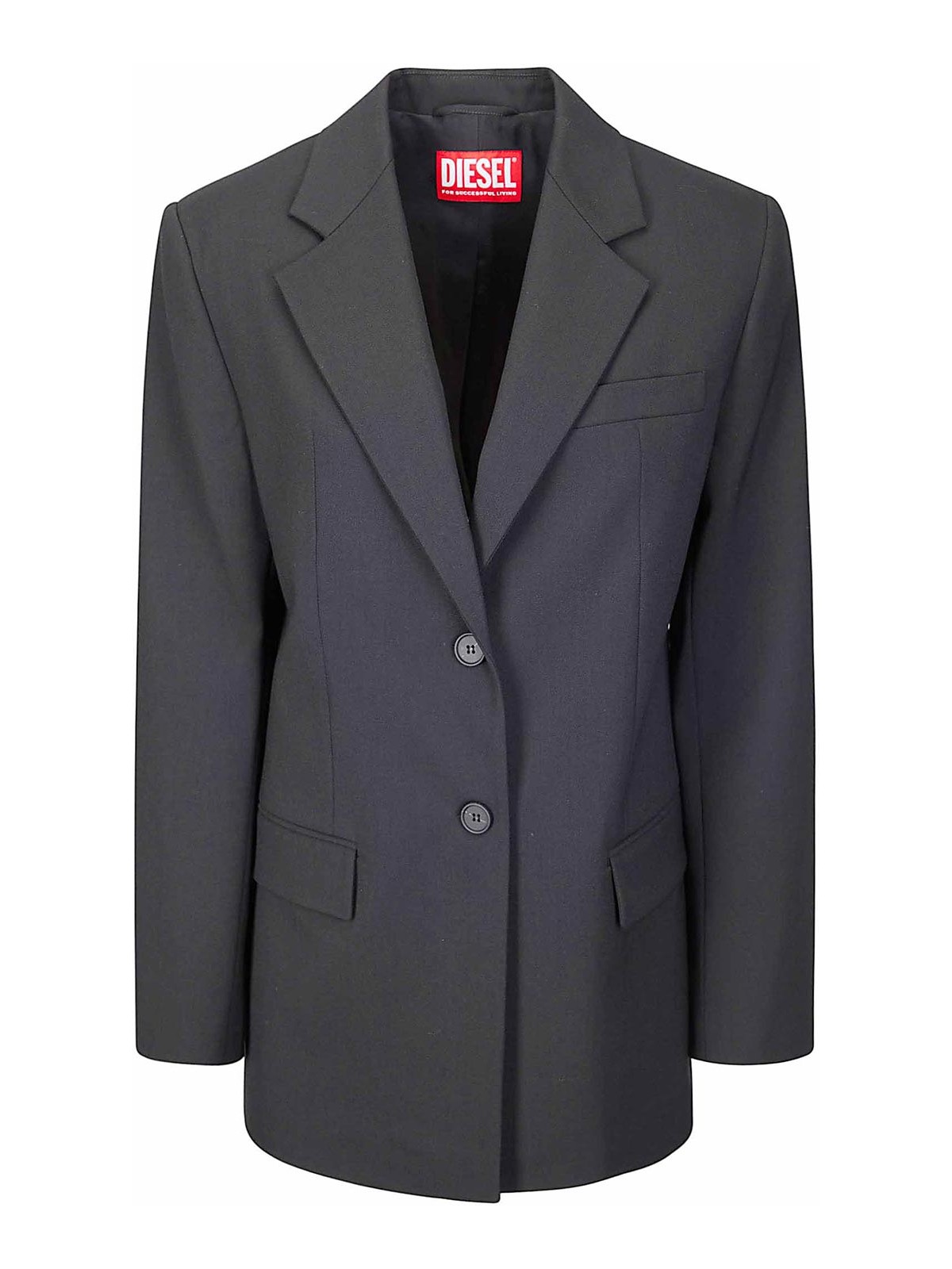 Wool blend jacket with deep neckline and regular collar, slightly tailored, single-breasted closure with black buttons, comfortable fit.