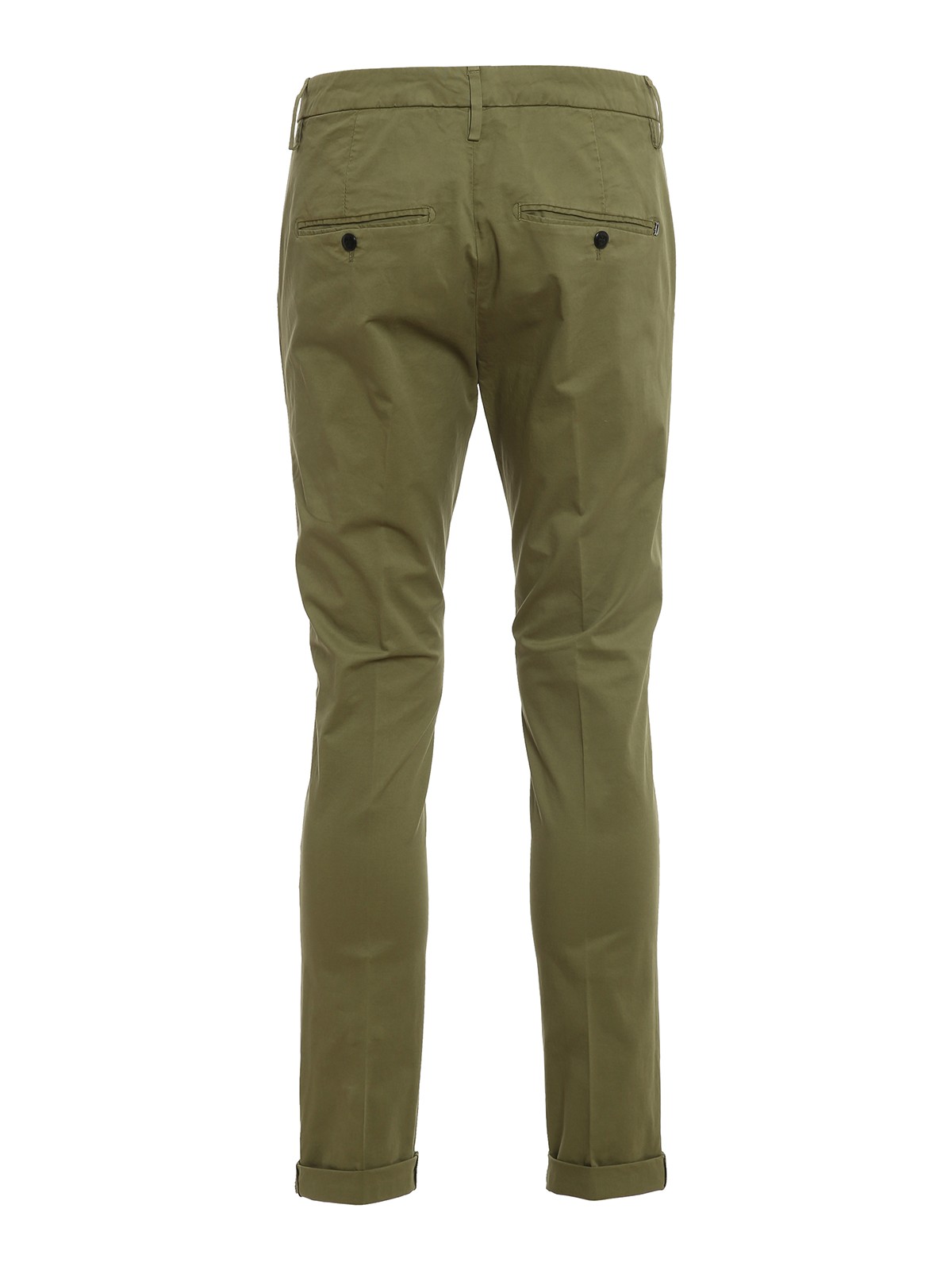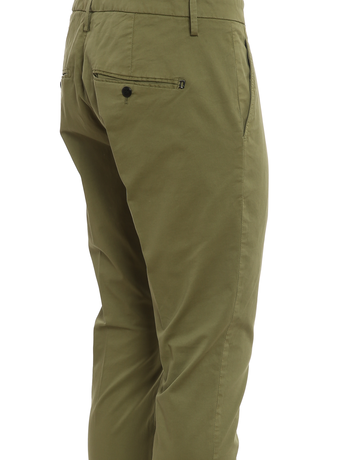 Gabardine pants featuring two slant pockets, two rear welt pockets, belt loops and concealed zip and snap fastening.