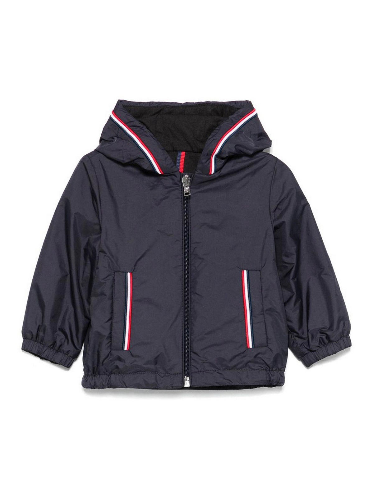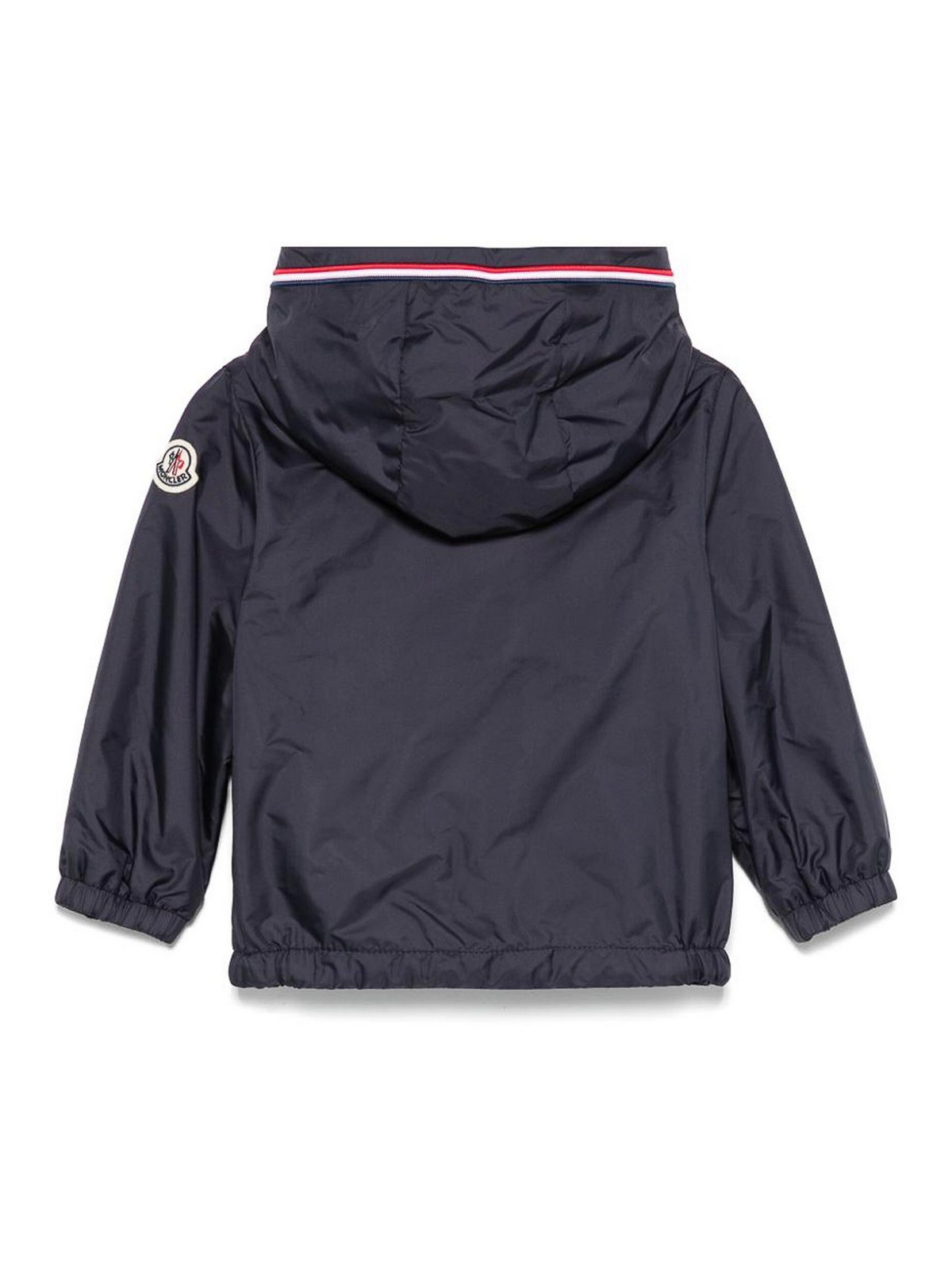 Features navy blue front zip closure hood two side pockets with snap button elasticated hems.
