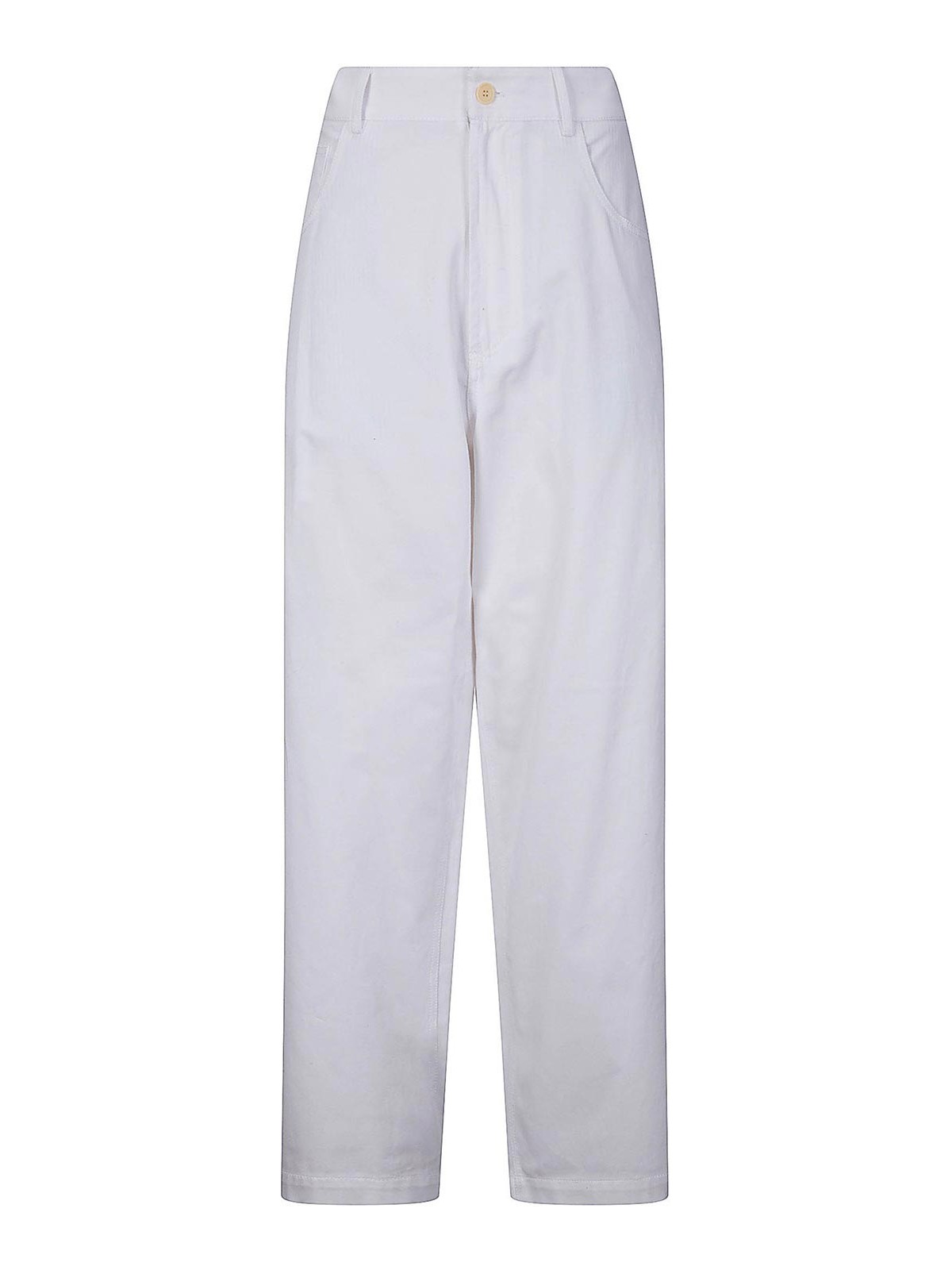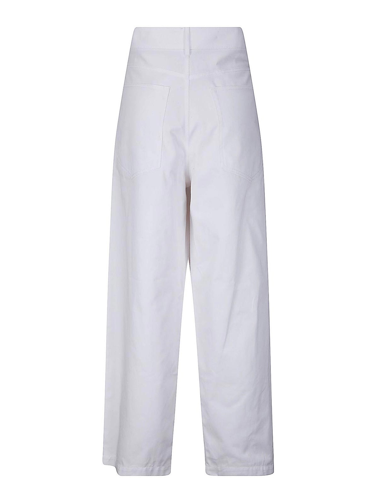 Wide leg cotton trousers, 5 pocket model, button and zip closure.