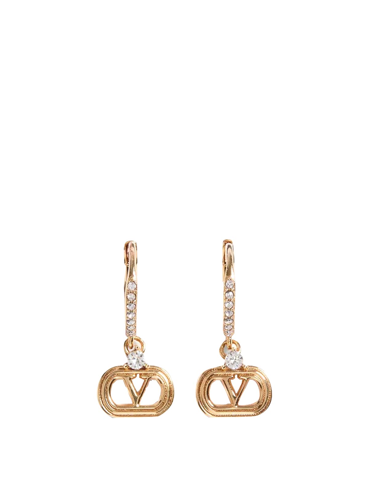 Valentino garavani gold vlogo signature earrings, hook closure, crystals details