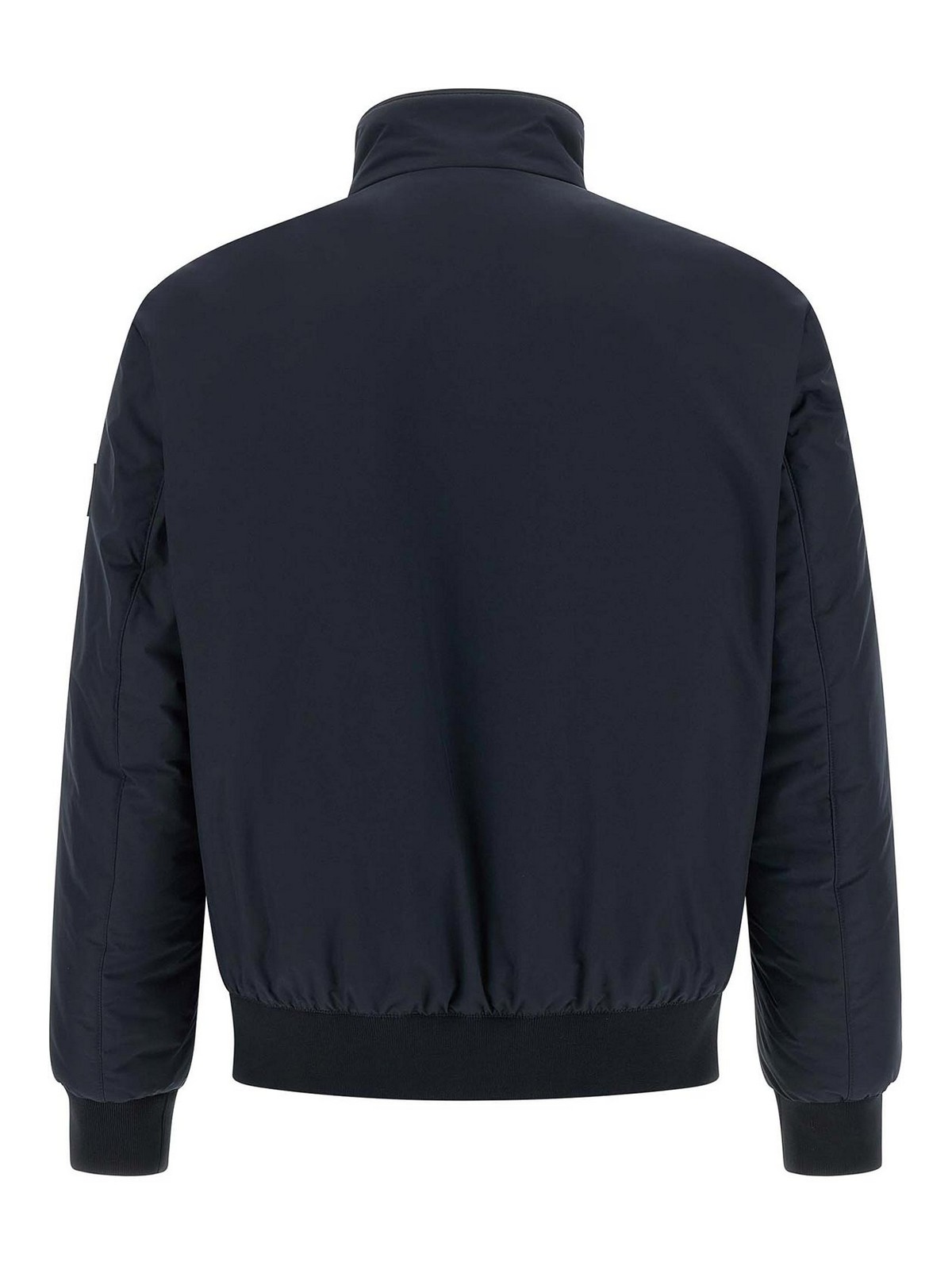 H-clase' quilted tech fabric jacket with ribbed stretch knit details, padded nylon lining, high neck, front zip closure, pockets, long cuffed sleeves and leather patch with metal lettering logo appliqu, and headband on the hem.
