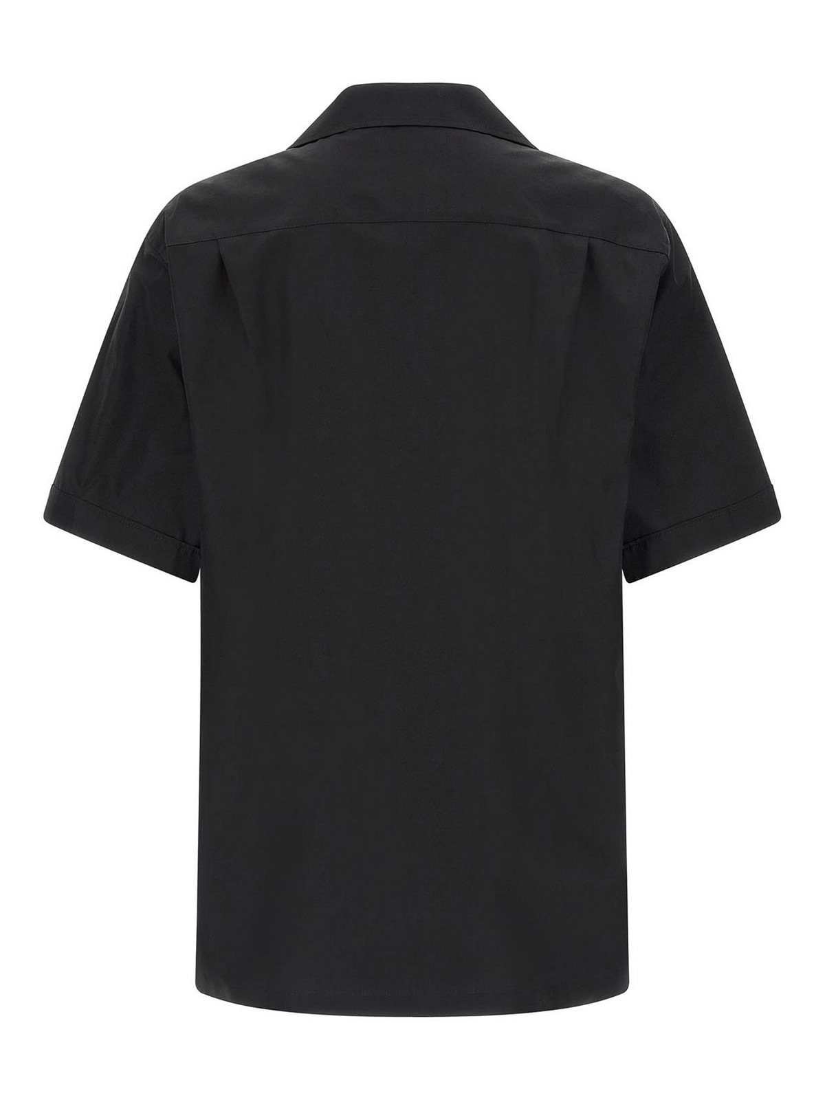 hawaii' cotton poplin shirt, breast pocket with heraldic patch, front button closure, short cuffed sleeves, side slits, asymmetric hem.