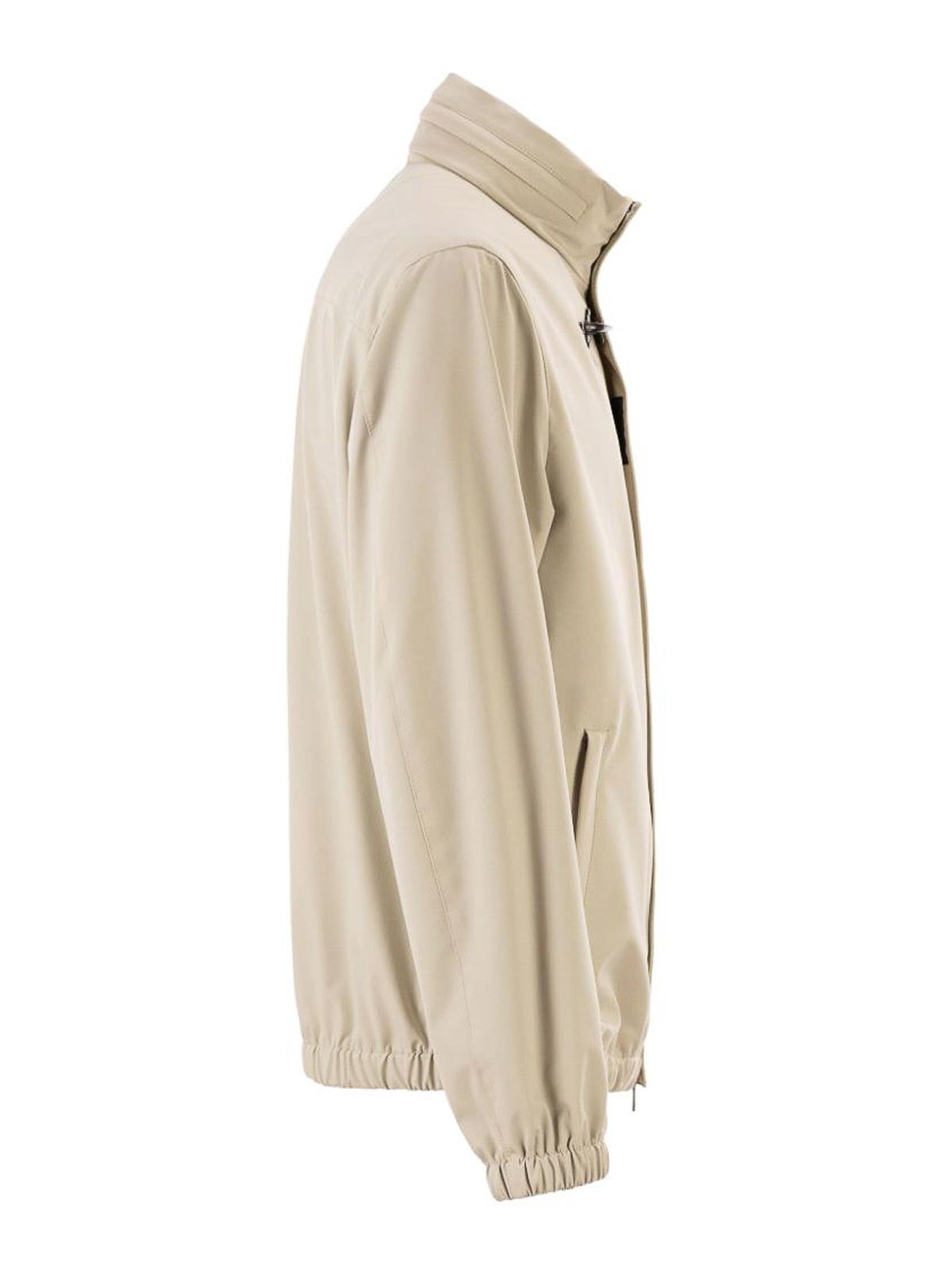 Jacket in cream cotton with stand-up collar, zip fastening and elasticated hem from fay, featuring press-stud fastening and a signature hook detail. designed for both comfort and practicality, this refined outerwear piece is ideal for smart-casual styling or everyday wear. a modern wardrobe essential that blends clean aesthetics with durable craftsmanship