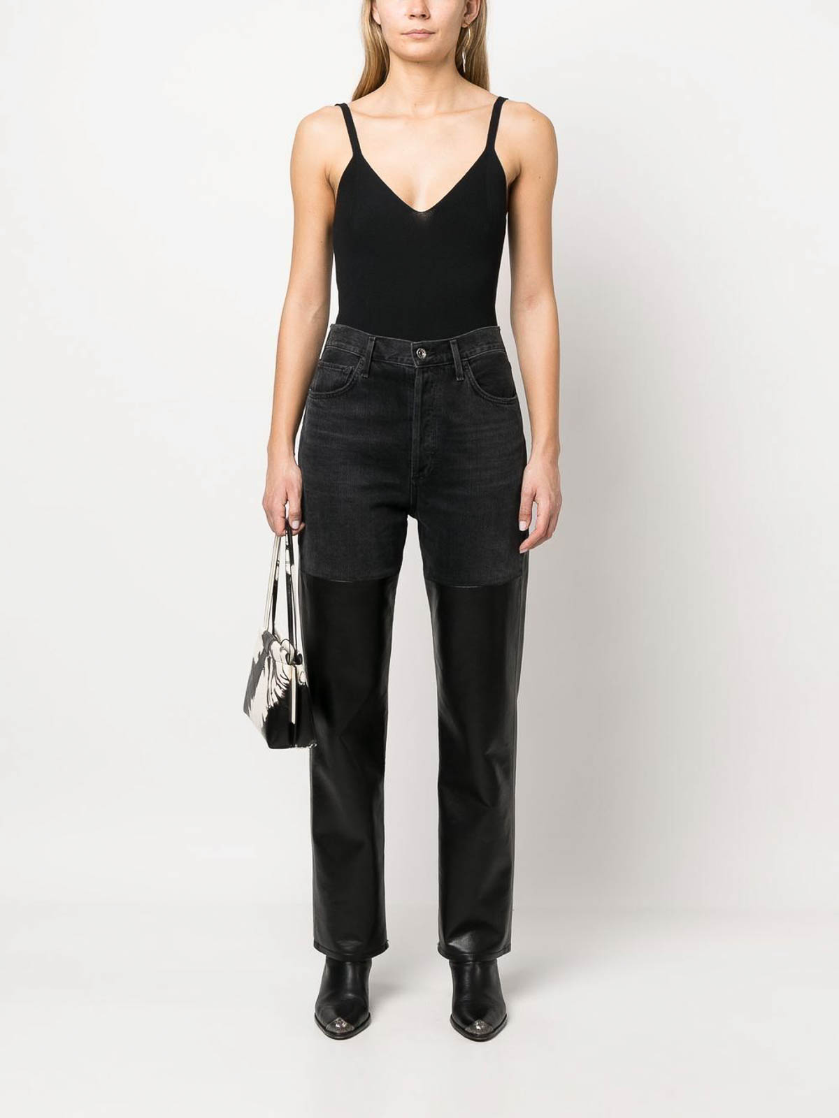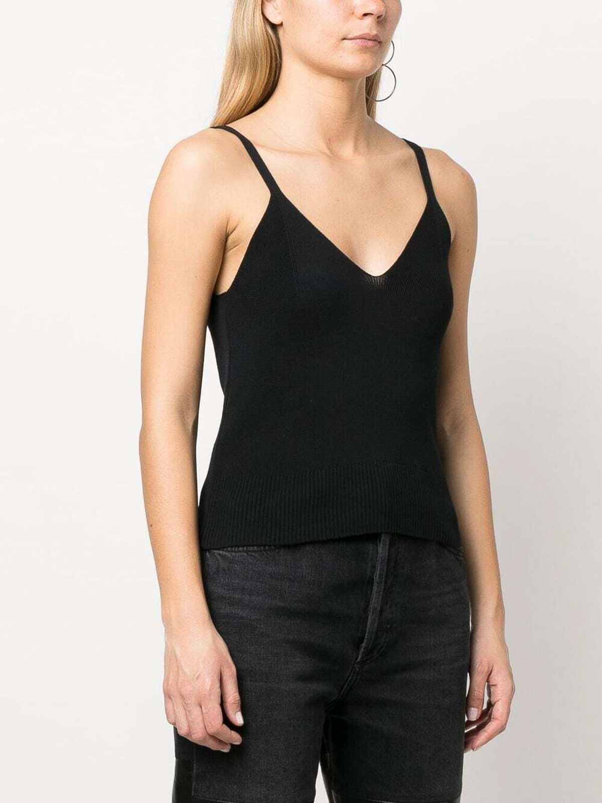 designer color: shadow black crispy, cotton blend, ribbed knit, v-neck, thin shoulder straps, straight hem.