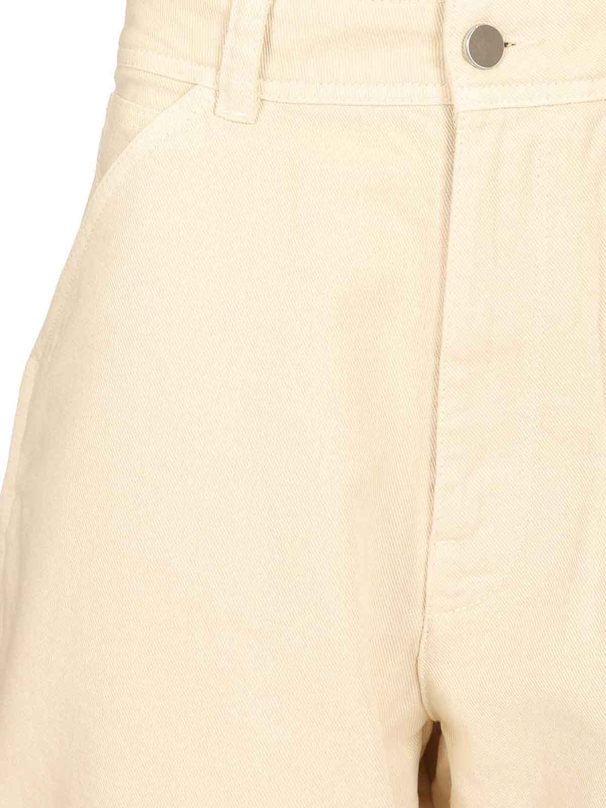 Wide leg trousers in snow-coloured denim with an oversized fit, hidden button fastening and lemaire embossed leather trim.