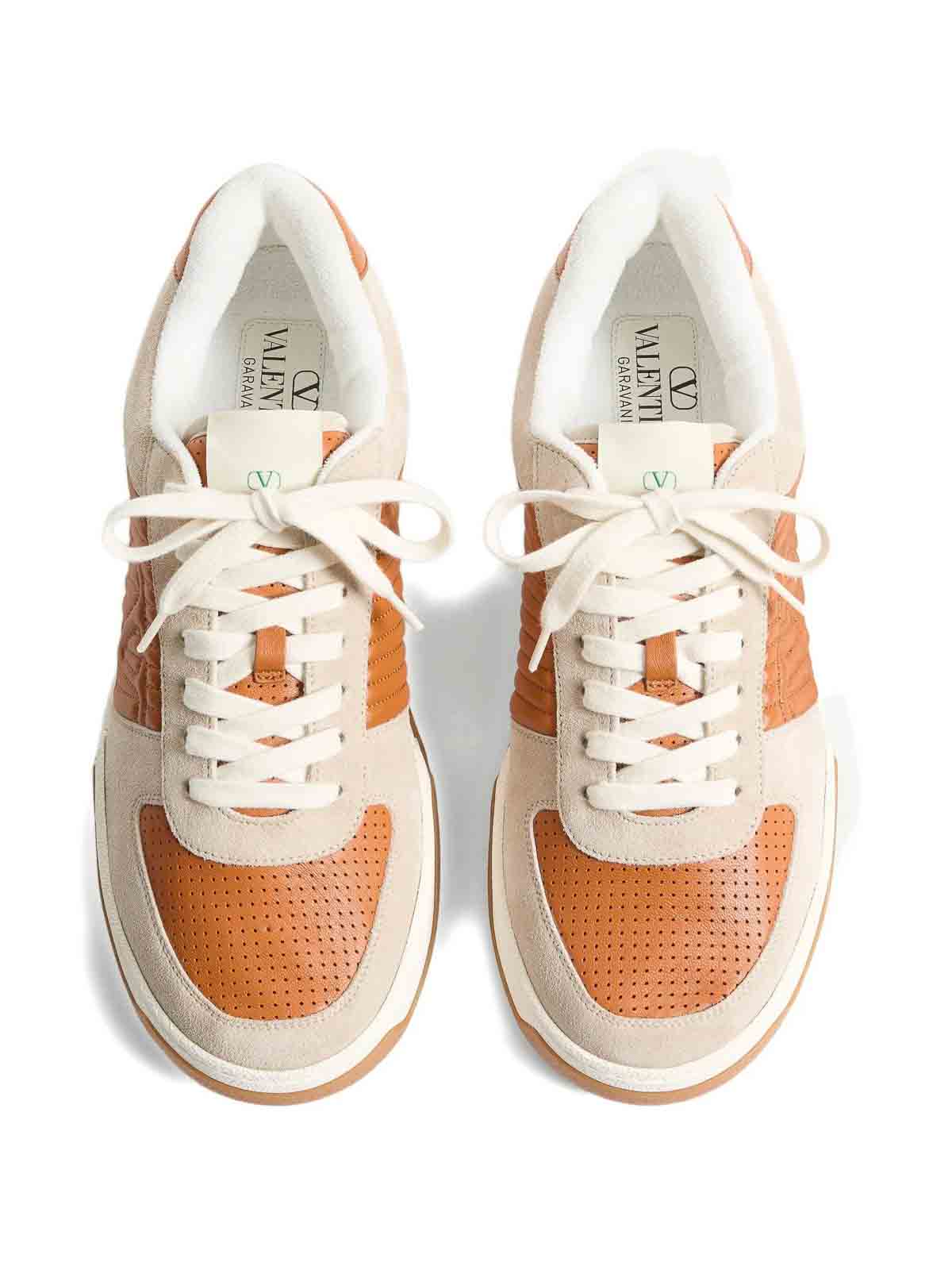 designer color: bianco, valentino sneakers, orange, logo detail, padded ankle, rubber sole, vlogo detail, lace-up, perforated logo.