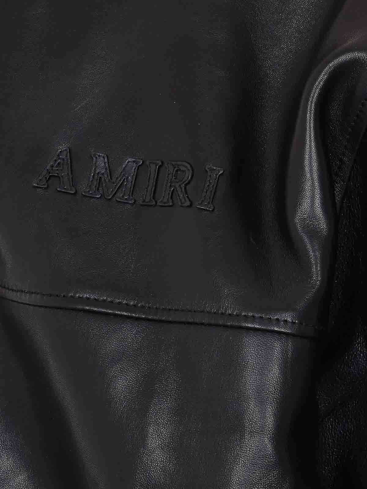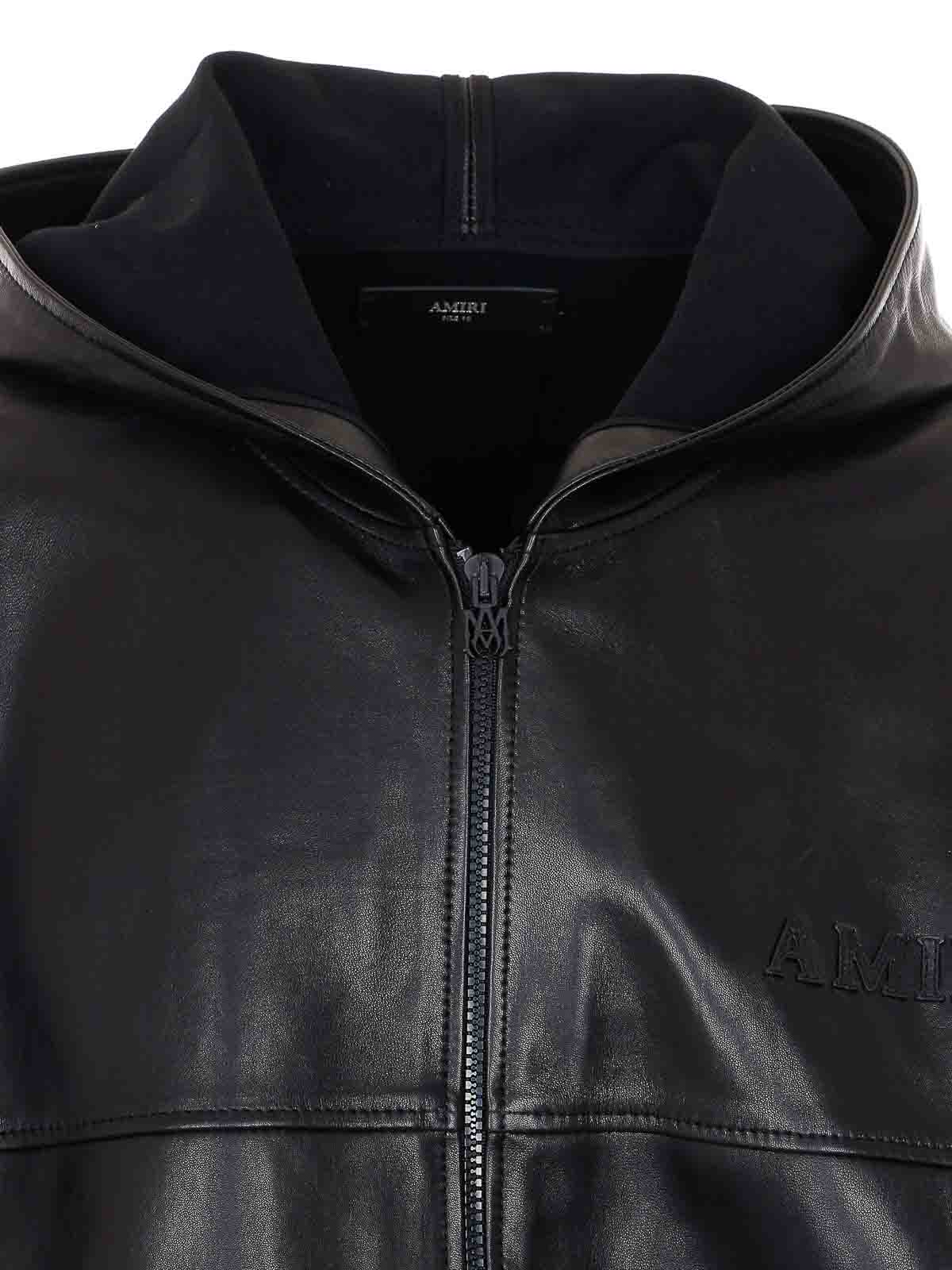 Amiri black leather zipped hoodie with frontal zip closure, hood detail, long sleeves, patch logo on the front, pockets, elasticized on waist