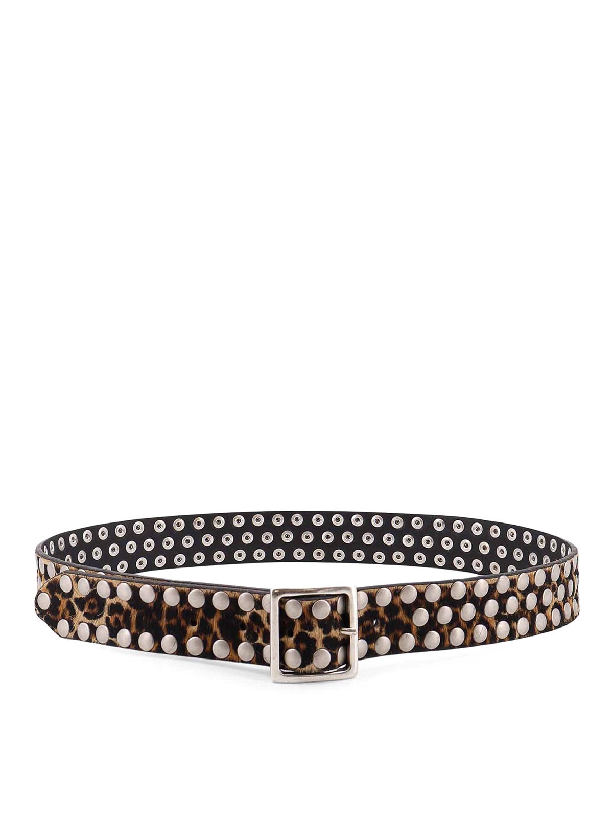 Adjustable closure, metal buckle, animal motif, stud detail, leather, made in Italy, W: 3 cm.