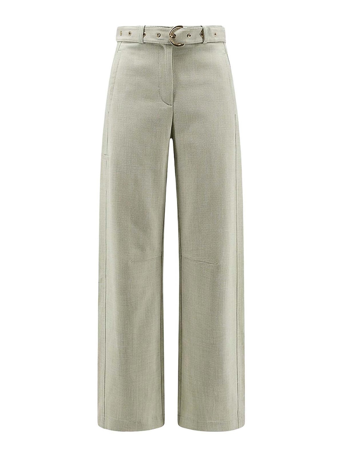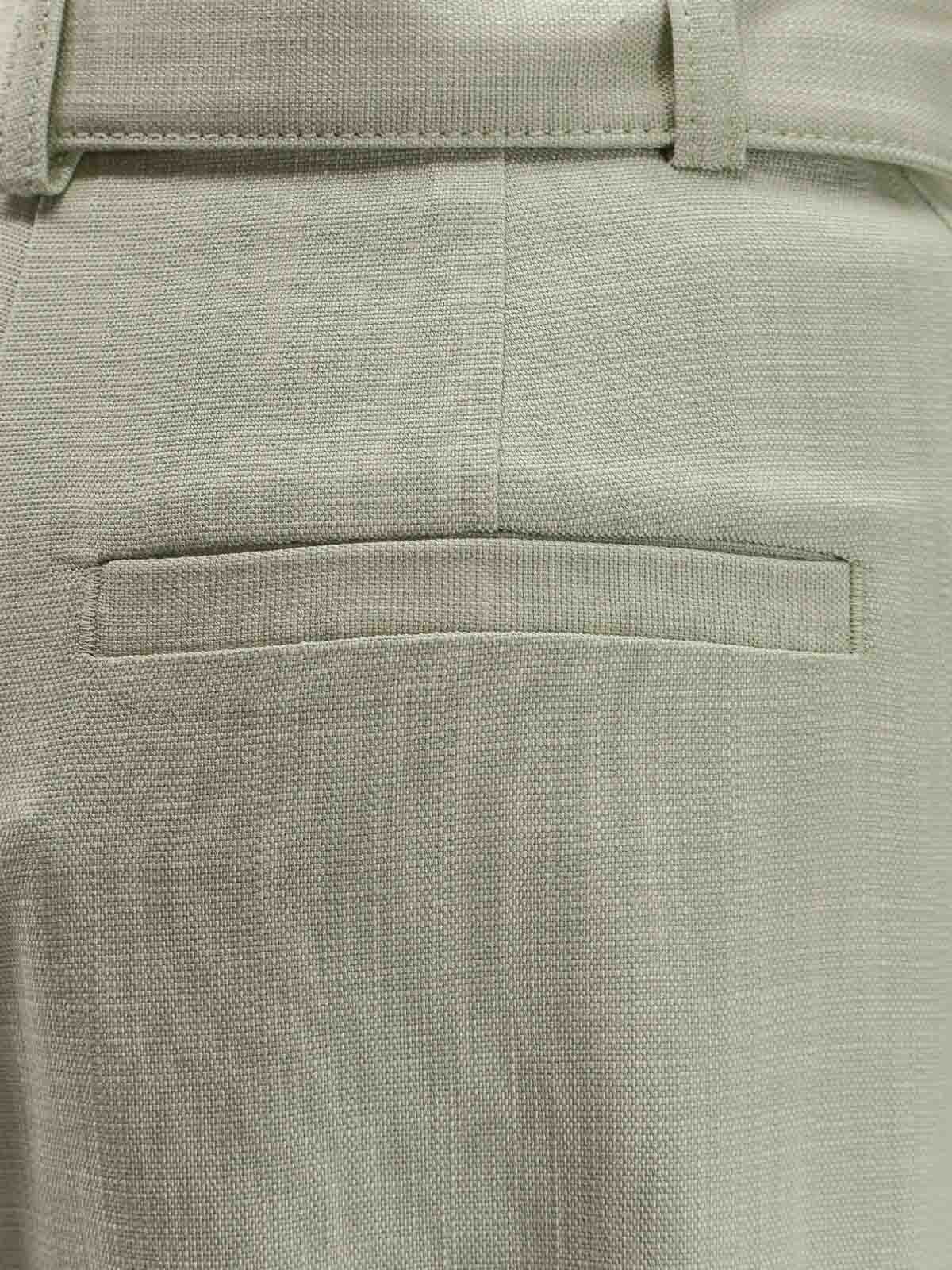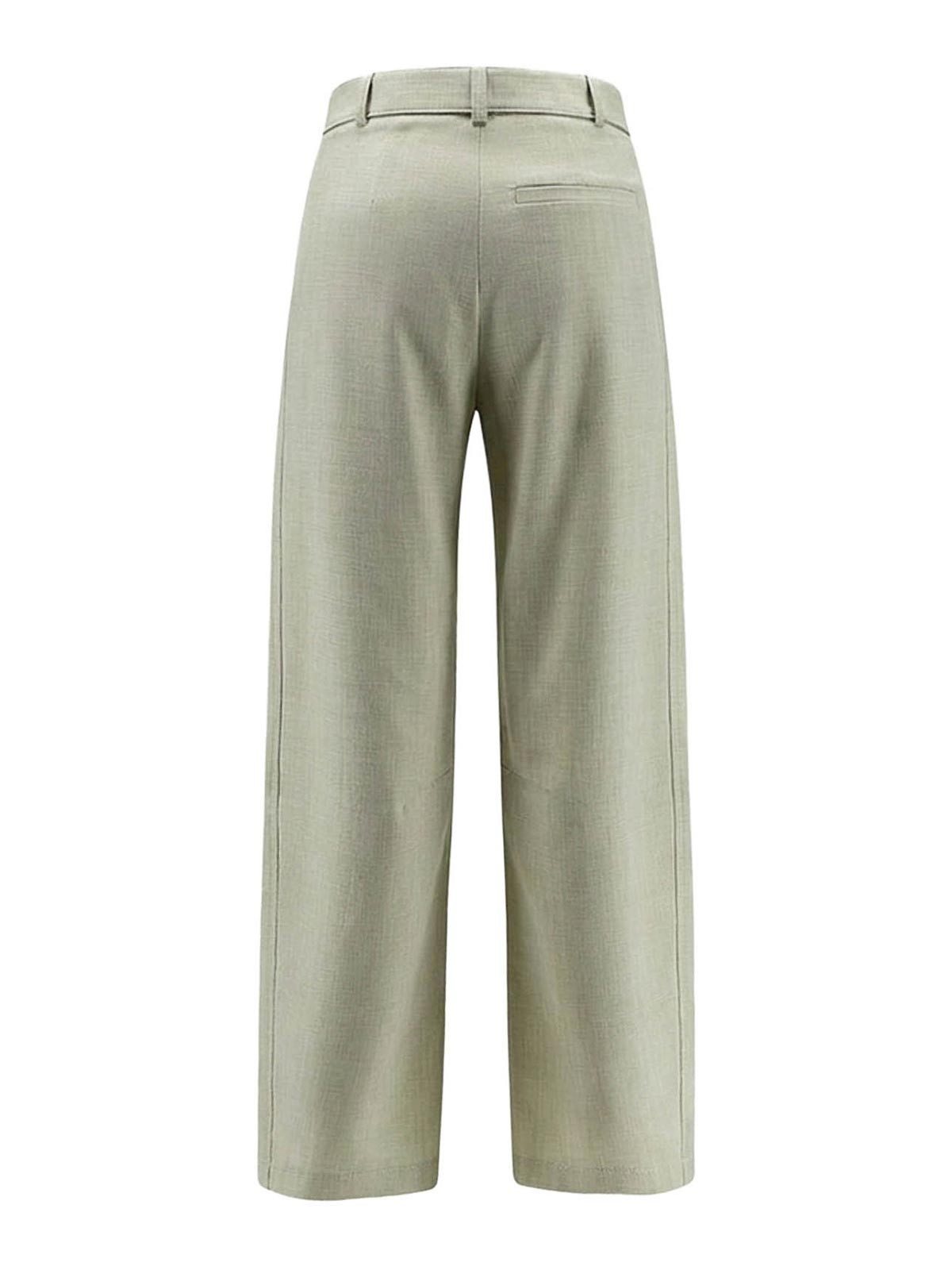 Zip and button closure, belt with metal buckle, side welt pockets, rear welt pocket, 91% viscose 8% polyester 1% elastane.
