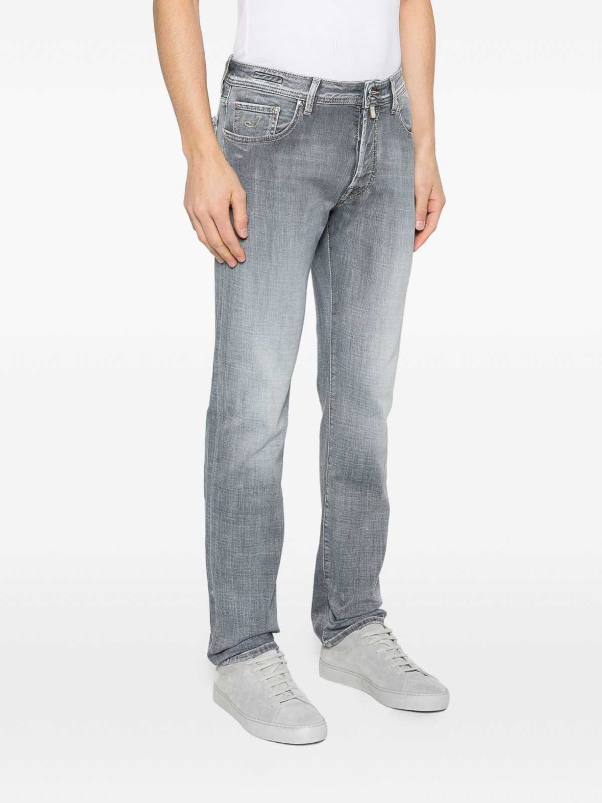 JACOB COHEN: straight leg jeans - Light Grey Five-Pocket Button Jeans
