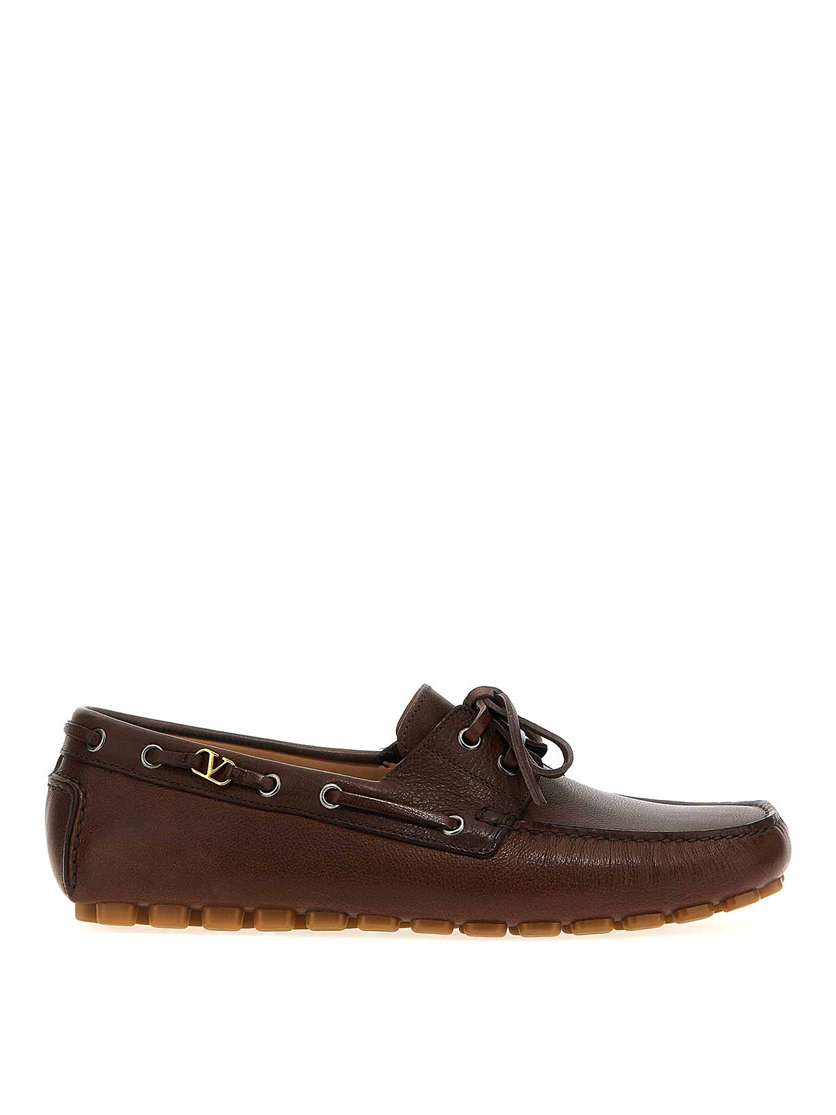 driver fastaway' buffalo leather loafers with lace-up closure, vlogo signature metallic antiqued effect on the side, custom rubber sole.