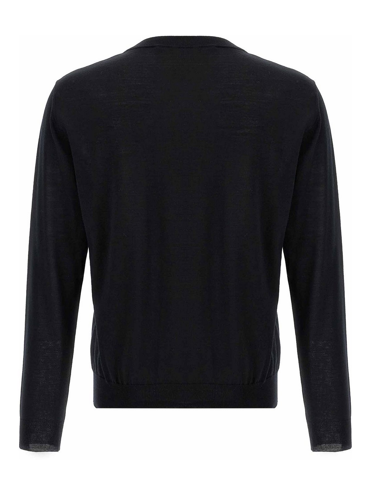 Light wool sweater with tone-on-tone logo embroidery on the front, crew neck, long cuffed sleeves.