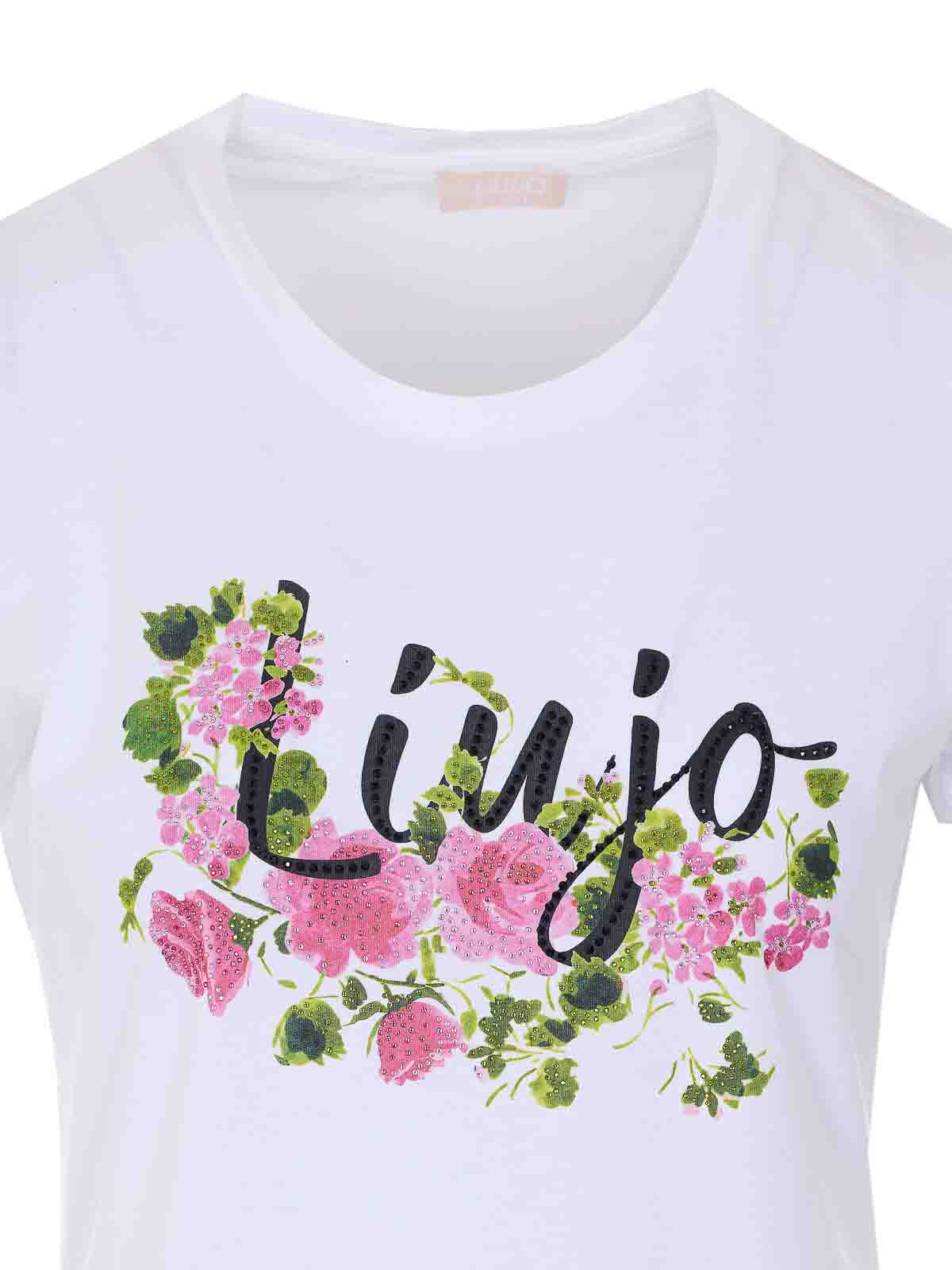 Liu jo white t-shirt, crewneck, print on the front and strass details