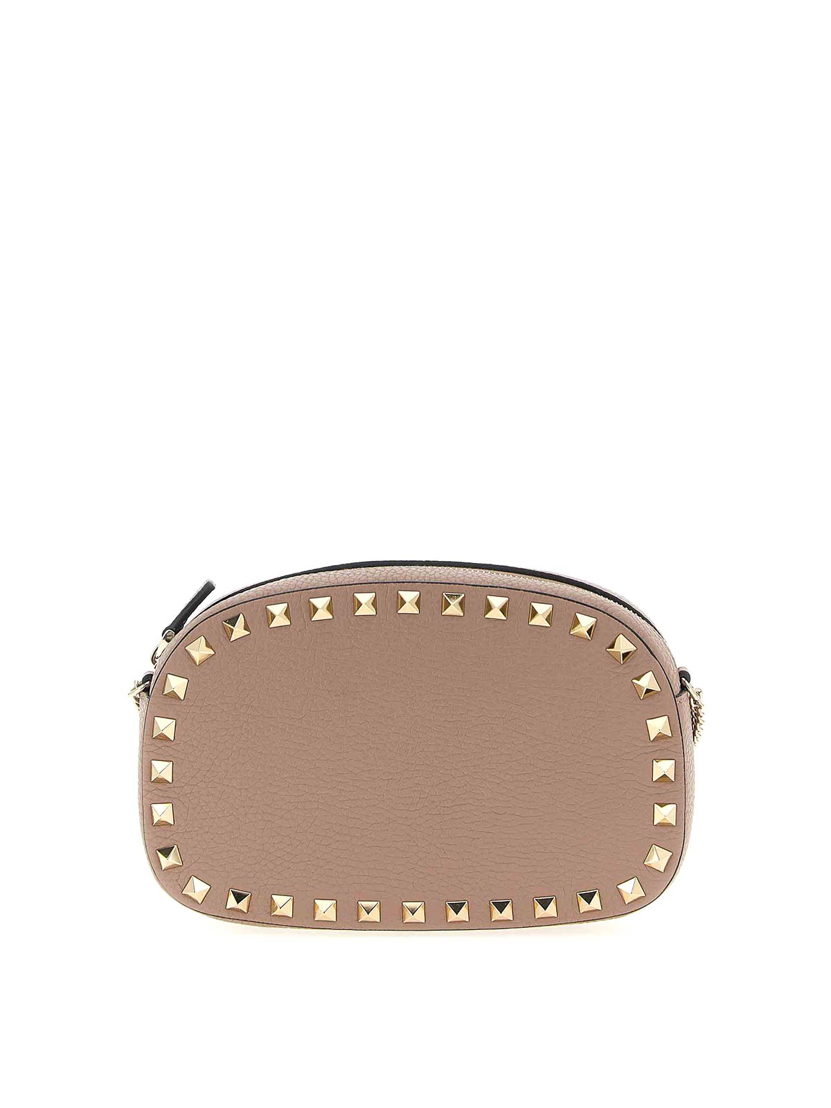 rockstud' mini crossbody bag in garnet calf leather with metal stud applications, top zip closure, nappa lining, chain shoulder strap.