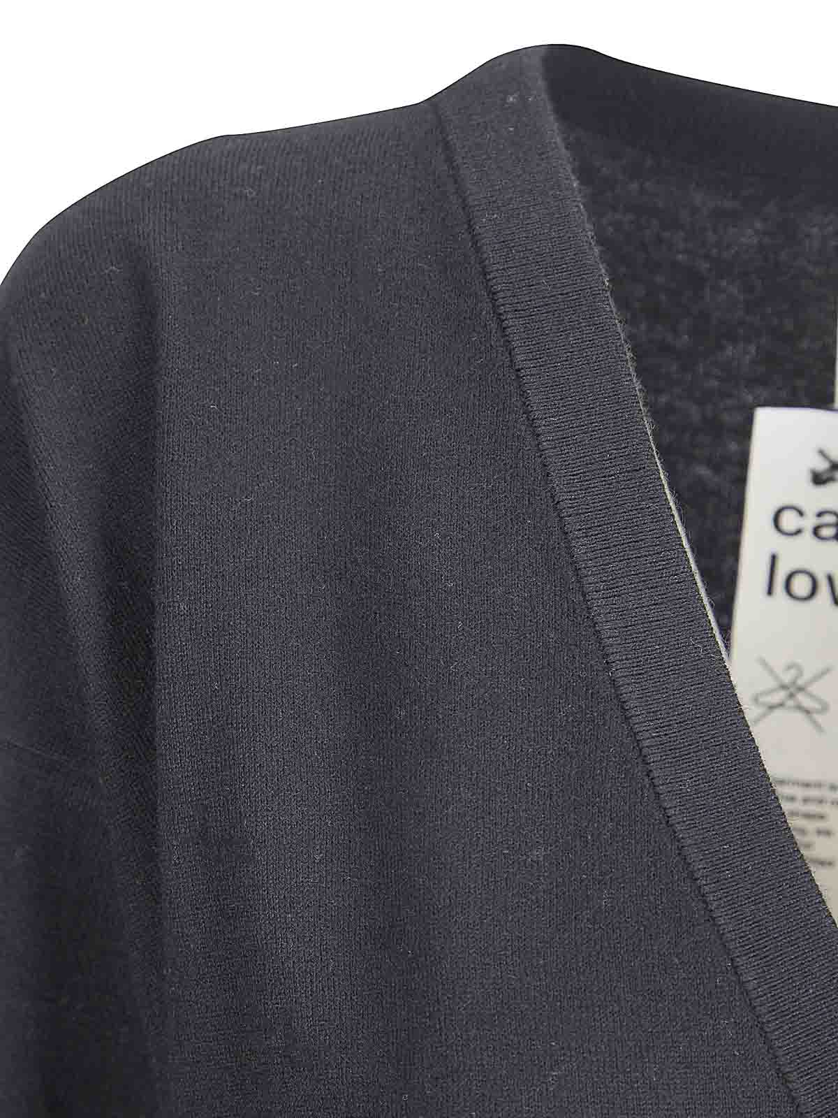 Oversized cotton and cashmere T-shirt, deep v-neck, short sleeves, contrasting edges.
