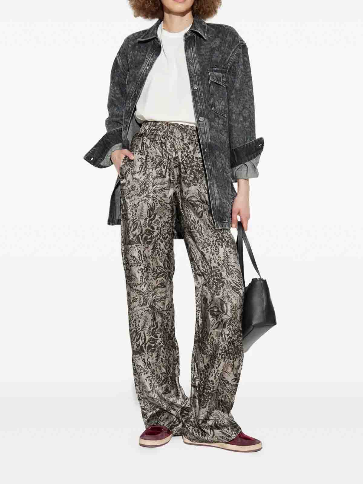 straight trousers with elasticated waist, floral print.