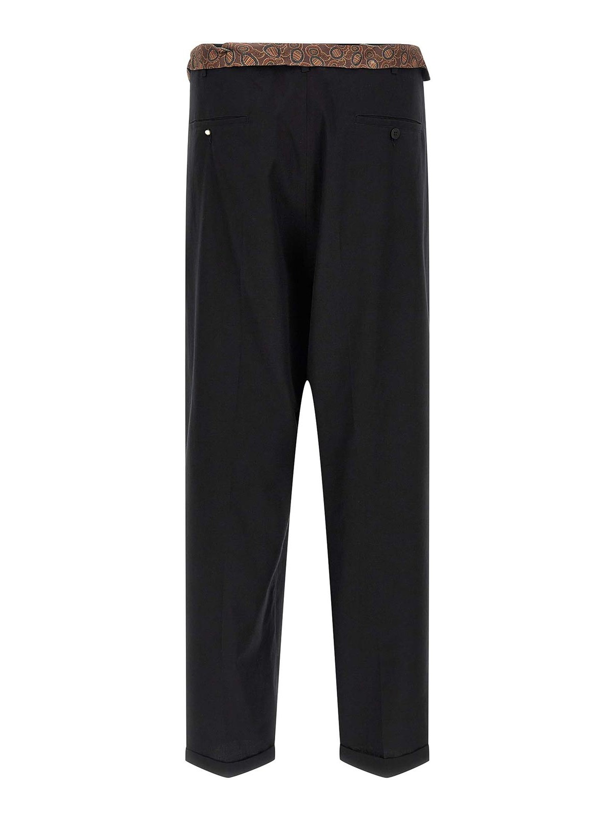 people's chic release' light cotton pants, drawstring with scarf insert at the waist, zip flap, wide leg, pince, stretched pleat, pockets, turn-up at the hem.