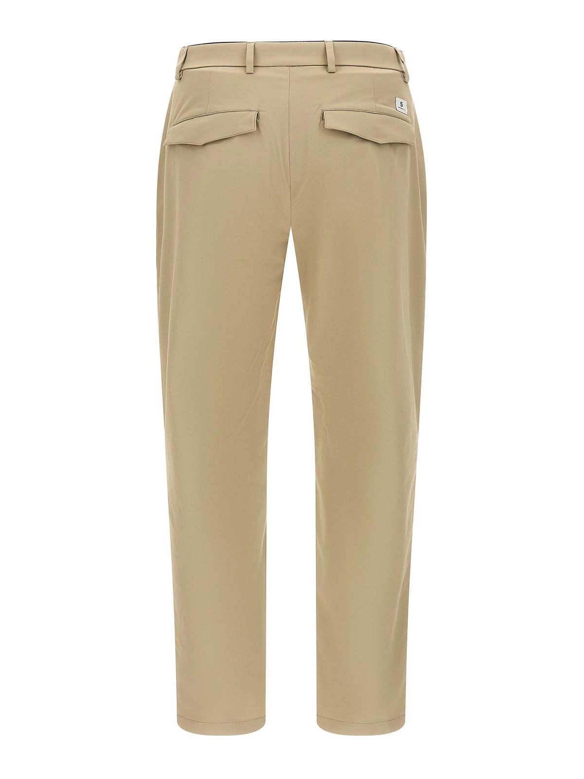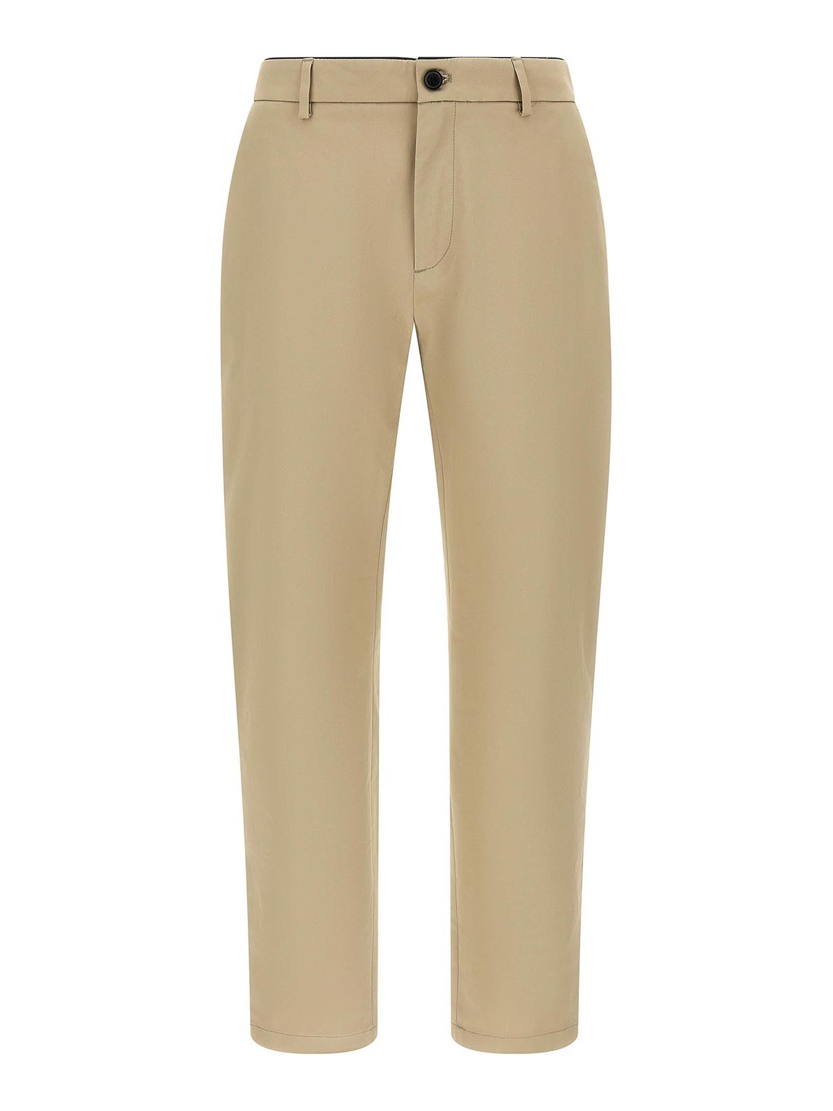 prince' stretch cotton pants, crop model, stretched pleat, front zip and button closure, pockets, back logo patch.