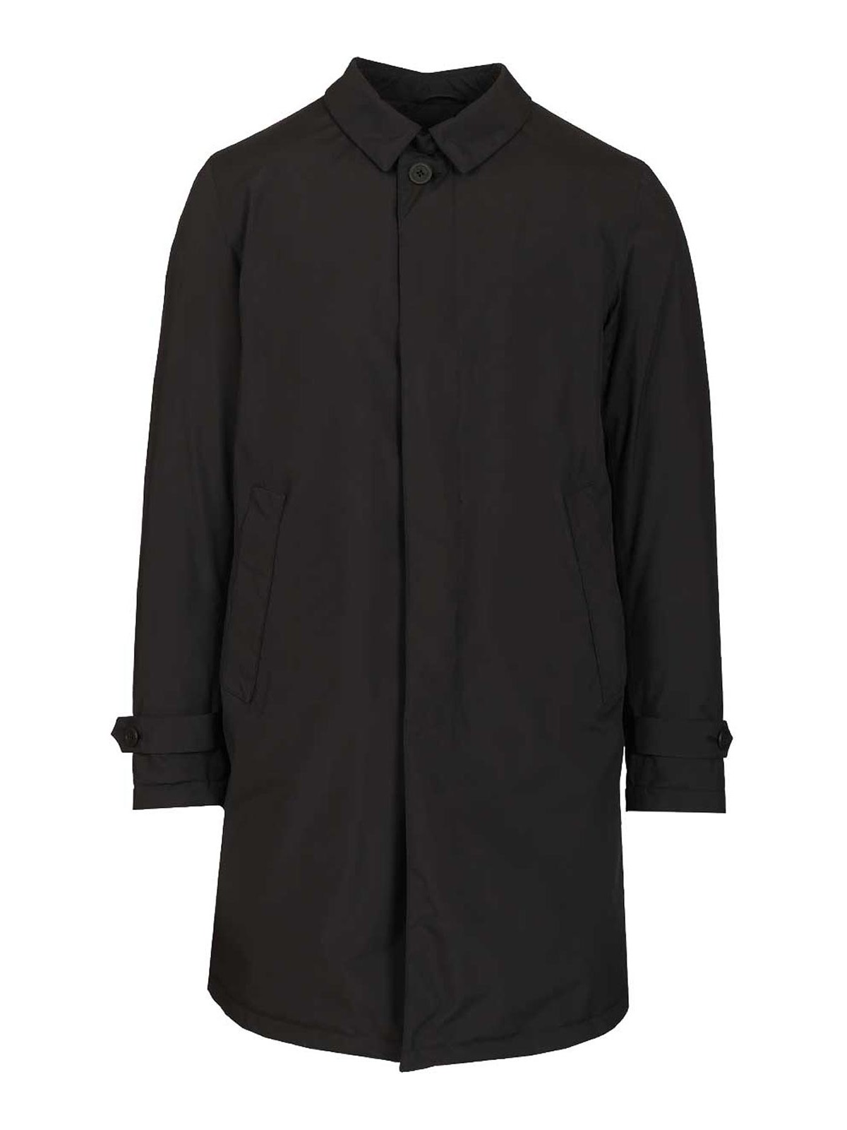 Prometeo padded nylon trench coat with hidden closure and welt pockets