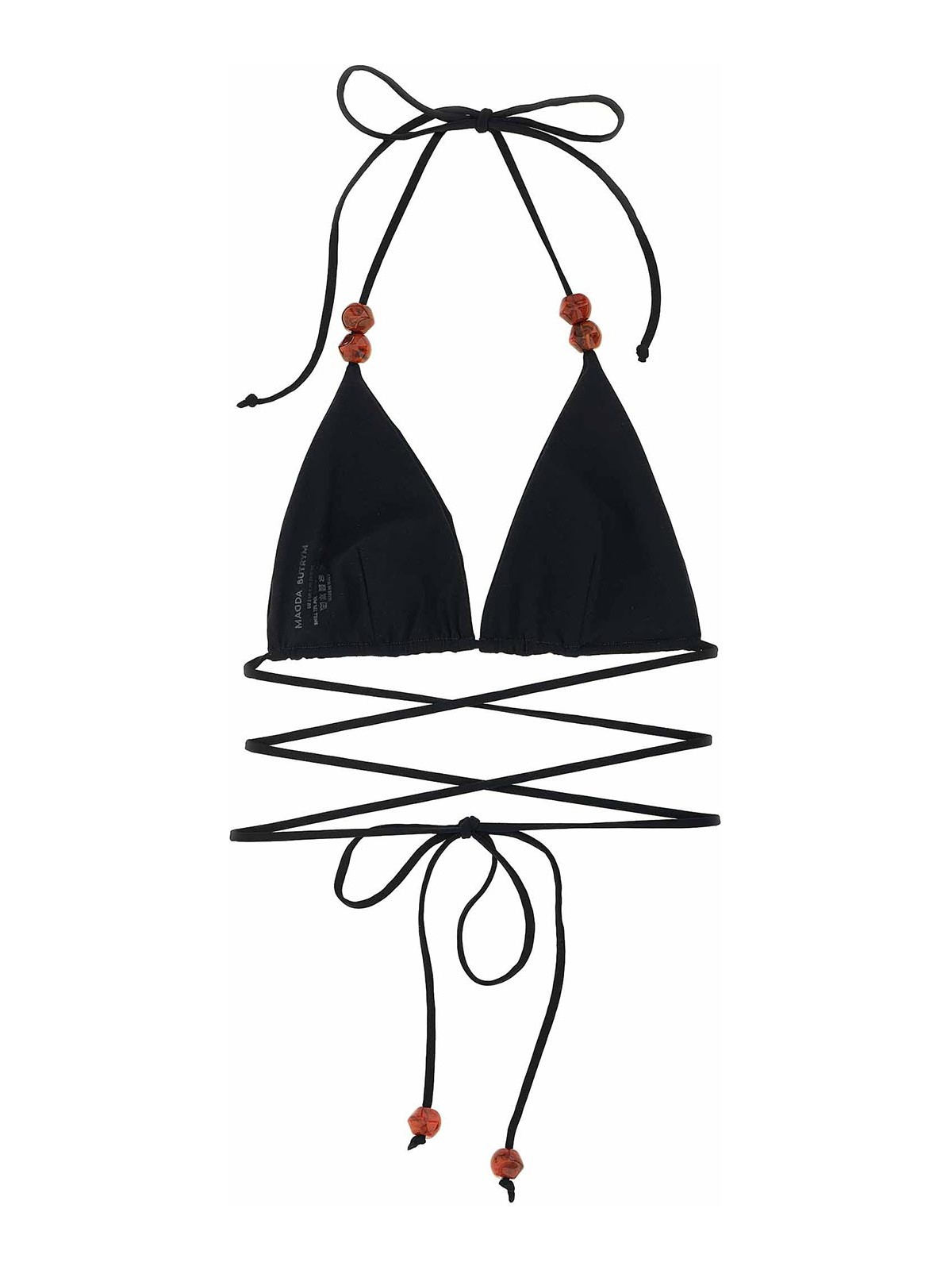 Triangle bikini top re 26 with adjustable lacing and beaded details.