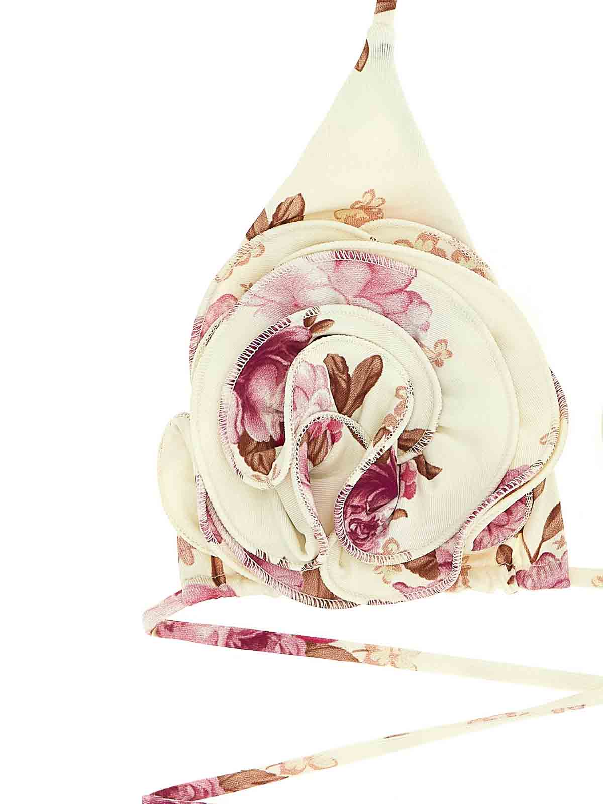 re26' triangle floral print bikini top with flower appliqu and adjustable closure with knotted sliding laces.