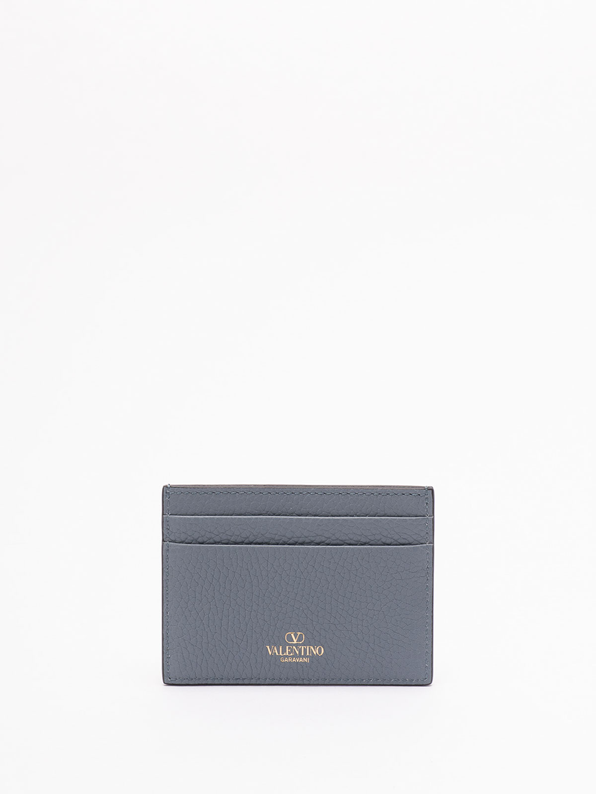 Rockstud card holder made of leather, embellished with iconic studs. The Stone Gray color gives a modern and refined look.