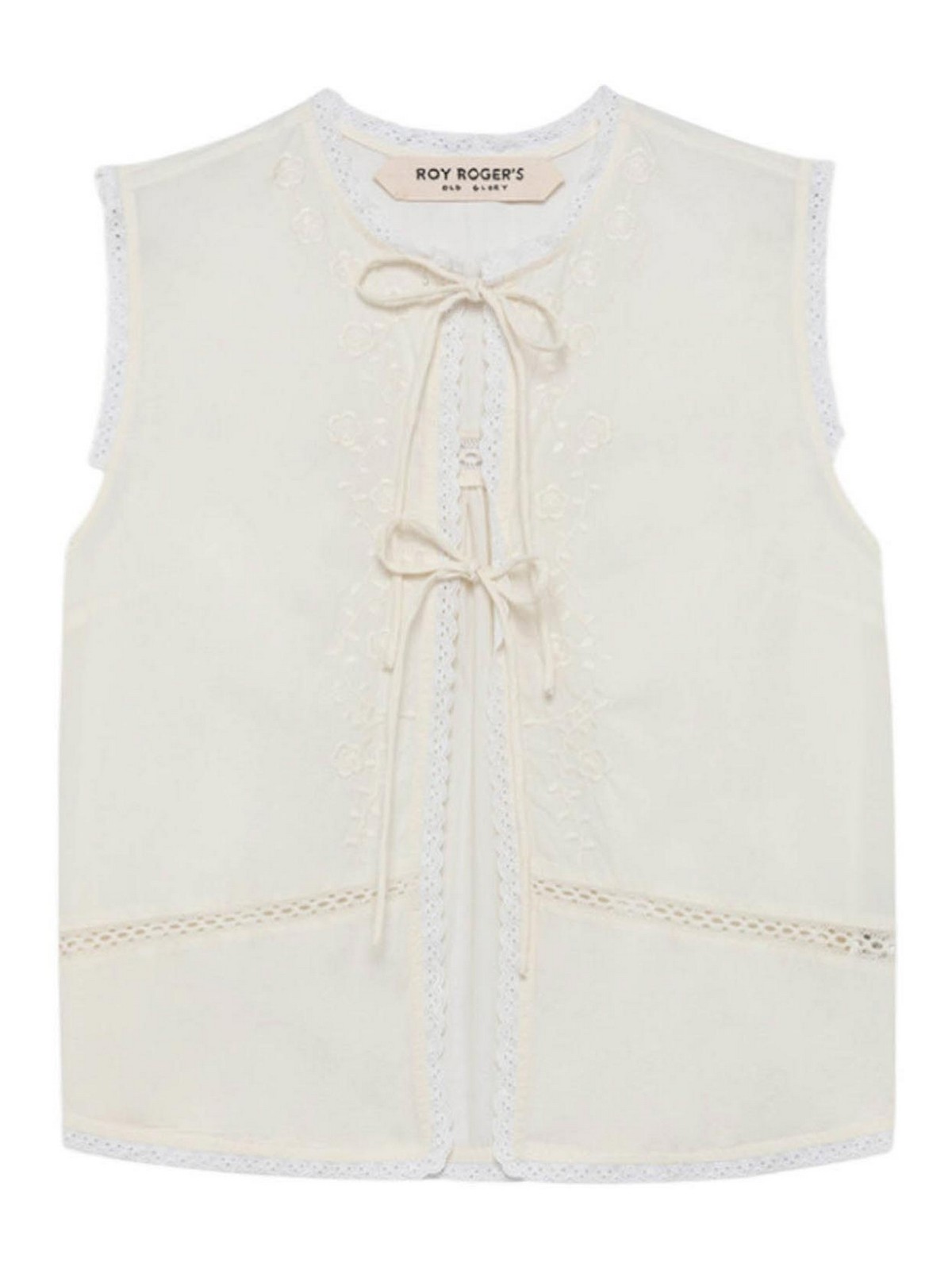 Roy roger's, old glory, long farm shirt with embroidery, white, old glory long farm shirt made of light plain washed cotton, characterized by a romantic and contemporary style that recalls the heritage aesthetics of the brand. the model combines delicate details and soft lines, making it ideal for refined casual looks. the garment features a mandarin collar and front closure with small buttons that enhance the clean design. the long puffy sleeves with buttoned cuffs add volume and movement to the silhouette, while the tone-on-tone embroidery on the front and the coordinated lace profiles embellish the garment with a feminine touch., solid color light washed cotton, mandarin collar, front closure with small buttons, long puffy sleeves with buttoned cuffs, tone-on-tone embroidery on the front, tone-on-tone lace profiles, regular fit.