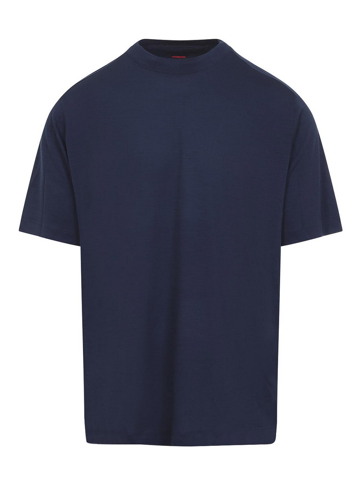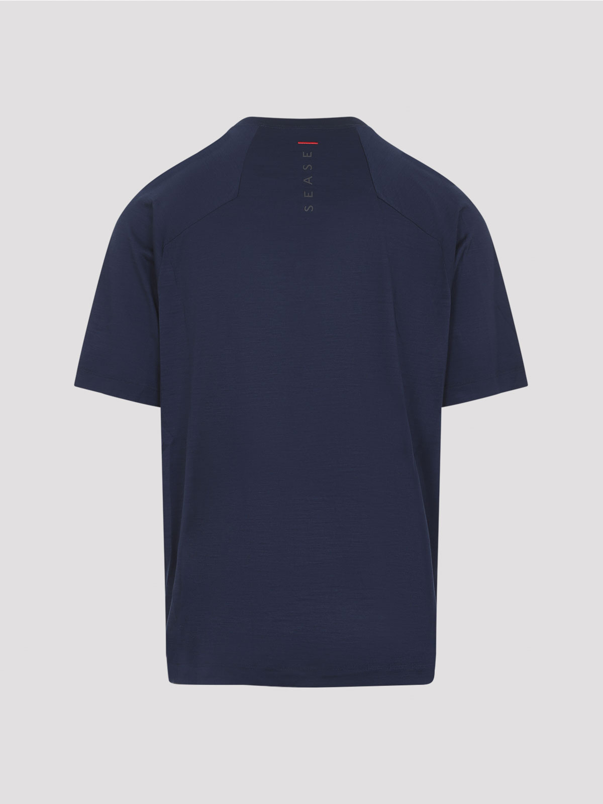 Sease runner blue cotton t-shirt. crafted from fine blue cotton, featuring a round neckline, short sleeves and straight hem.