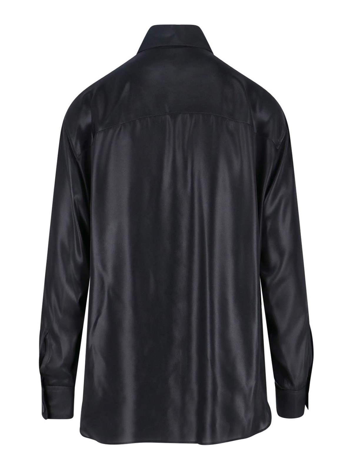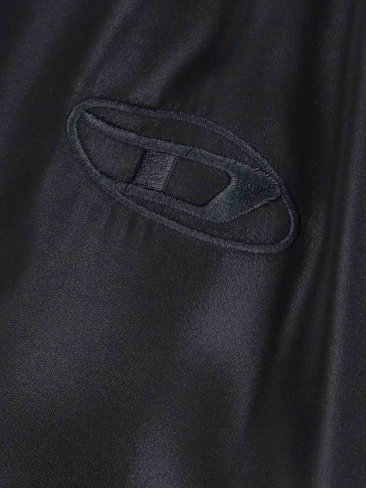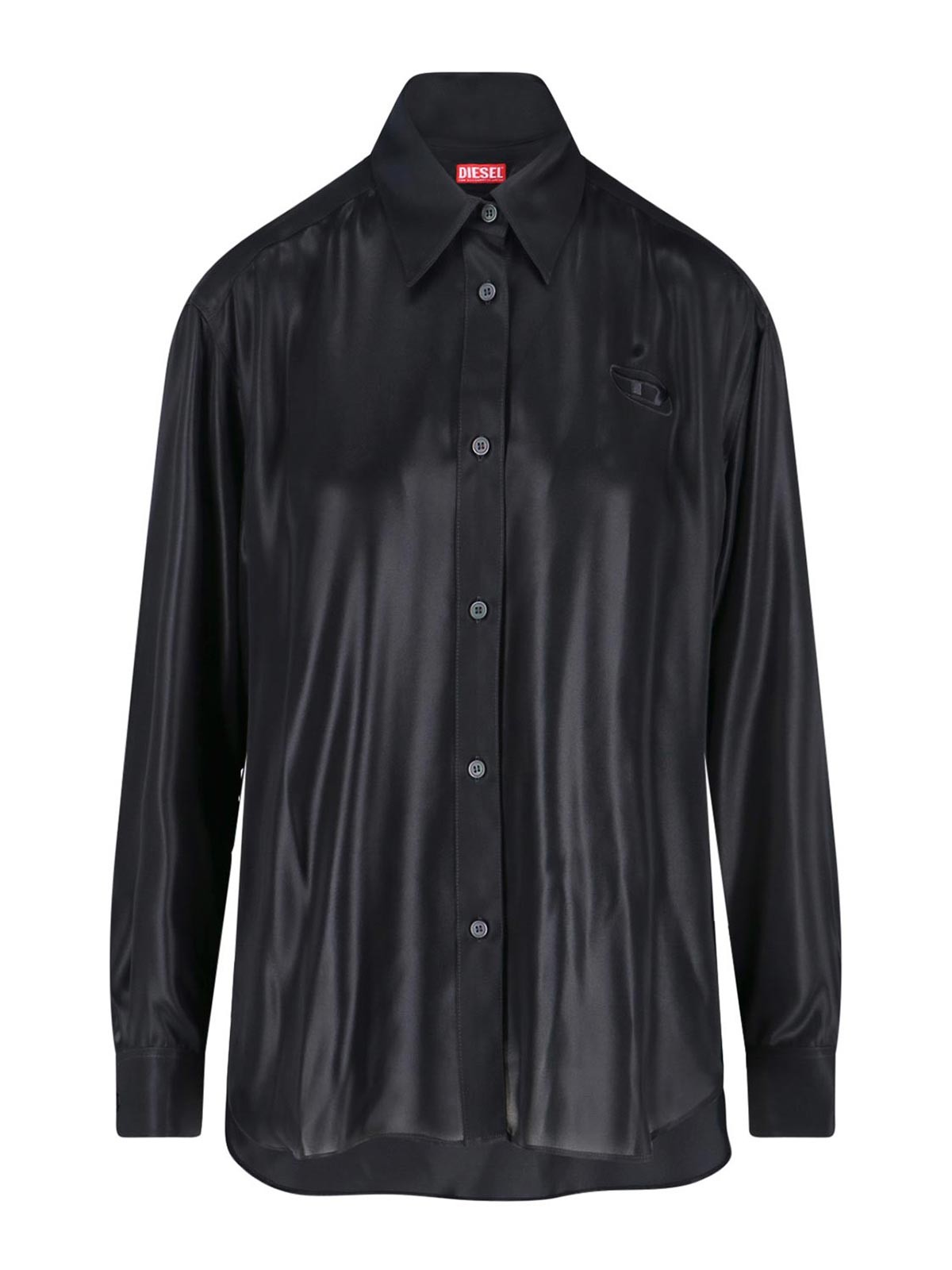 s-simply-c-wn-q1 diesel shirt, in black laminated fabric, classic collar, long sleeves, button closure, tone-on-tone logo embroidery on the front, buttoned cuffs, straight hem on the front, curved on the back.
