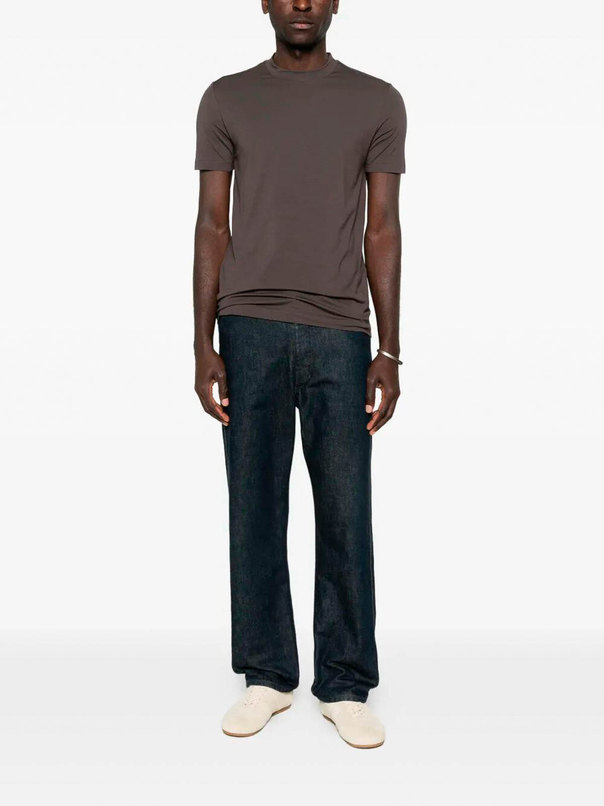 Short-sleeved shirt with essential crew neck, made of soft and light yarn, characterized by clean finishes and regular fit.