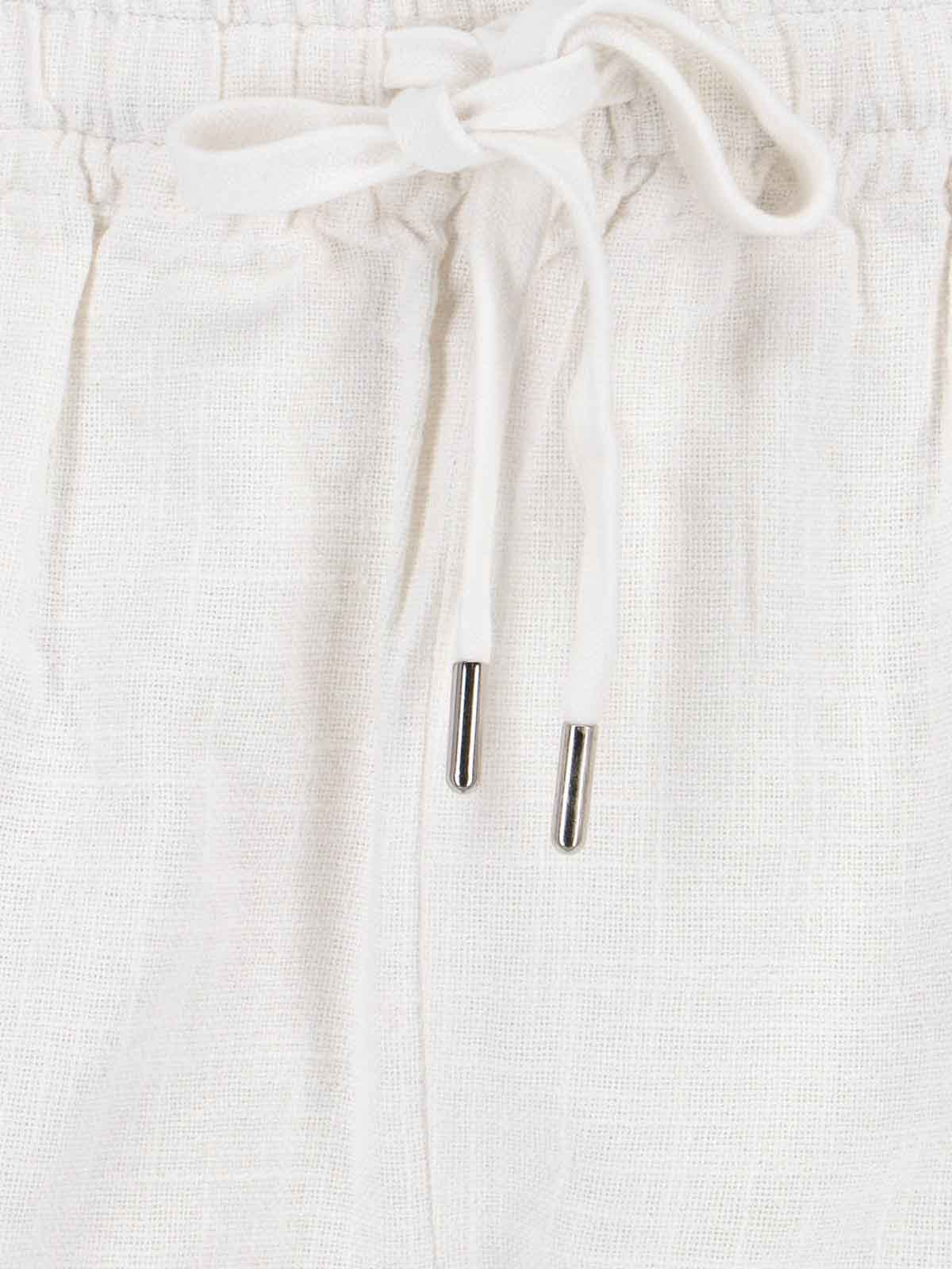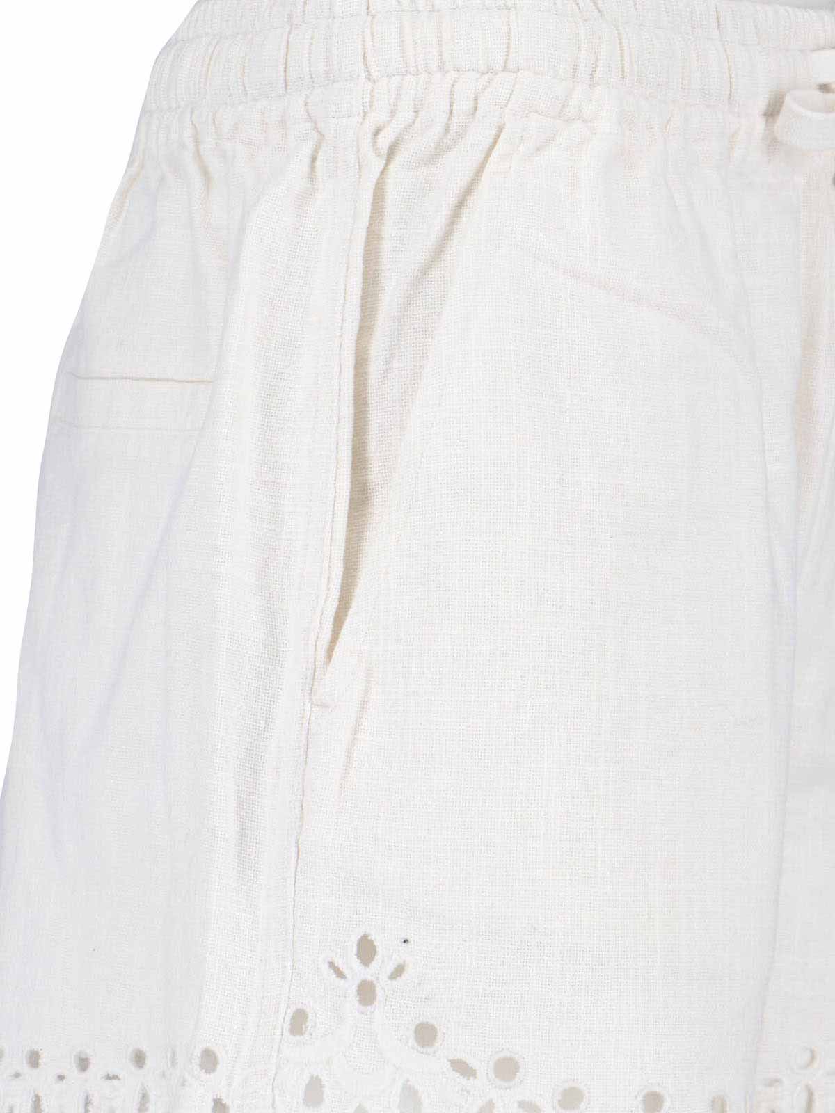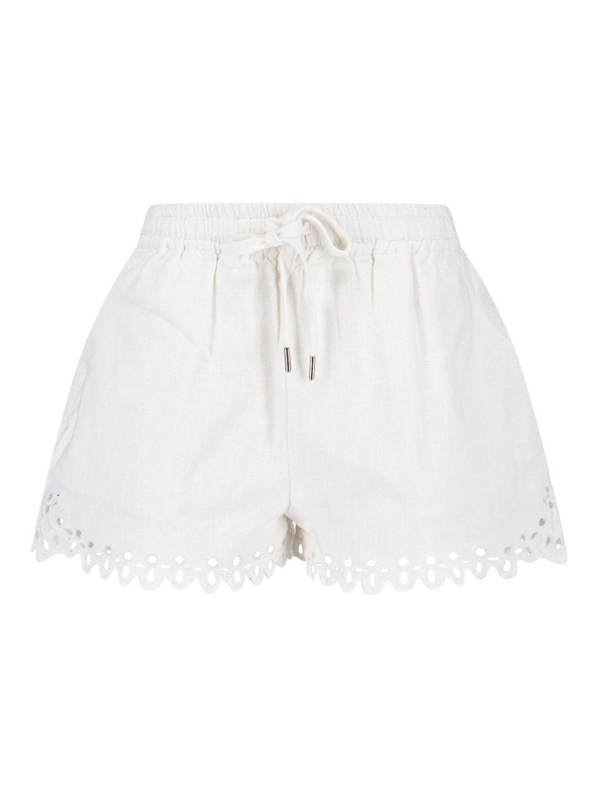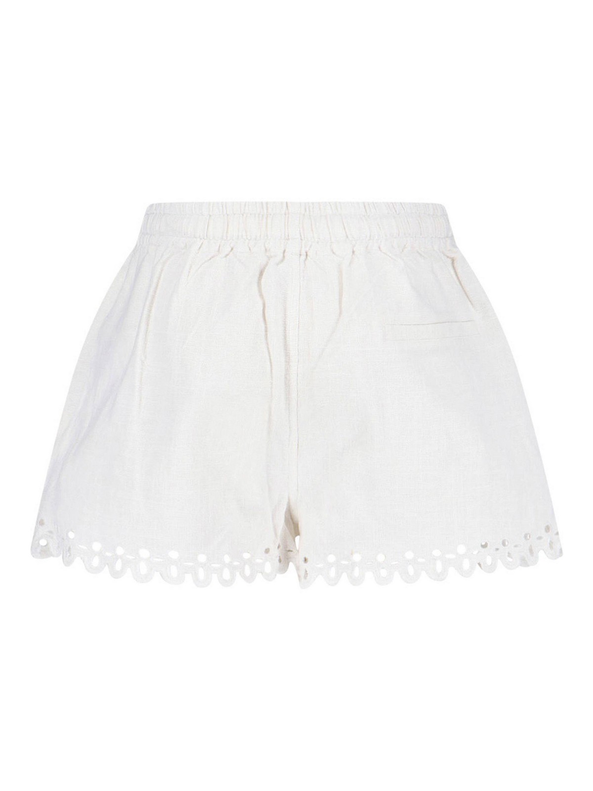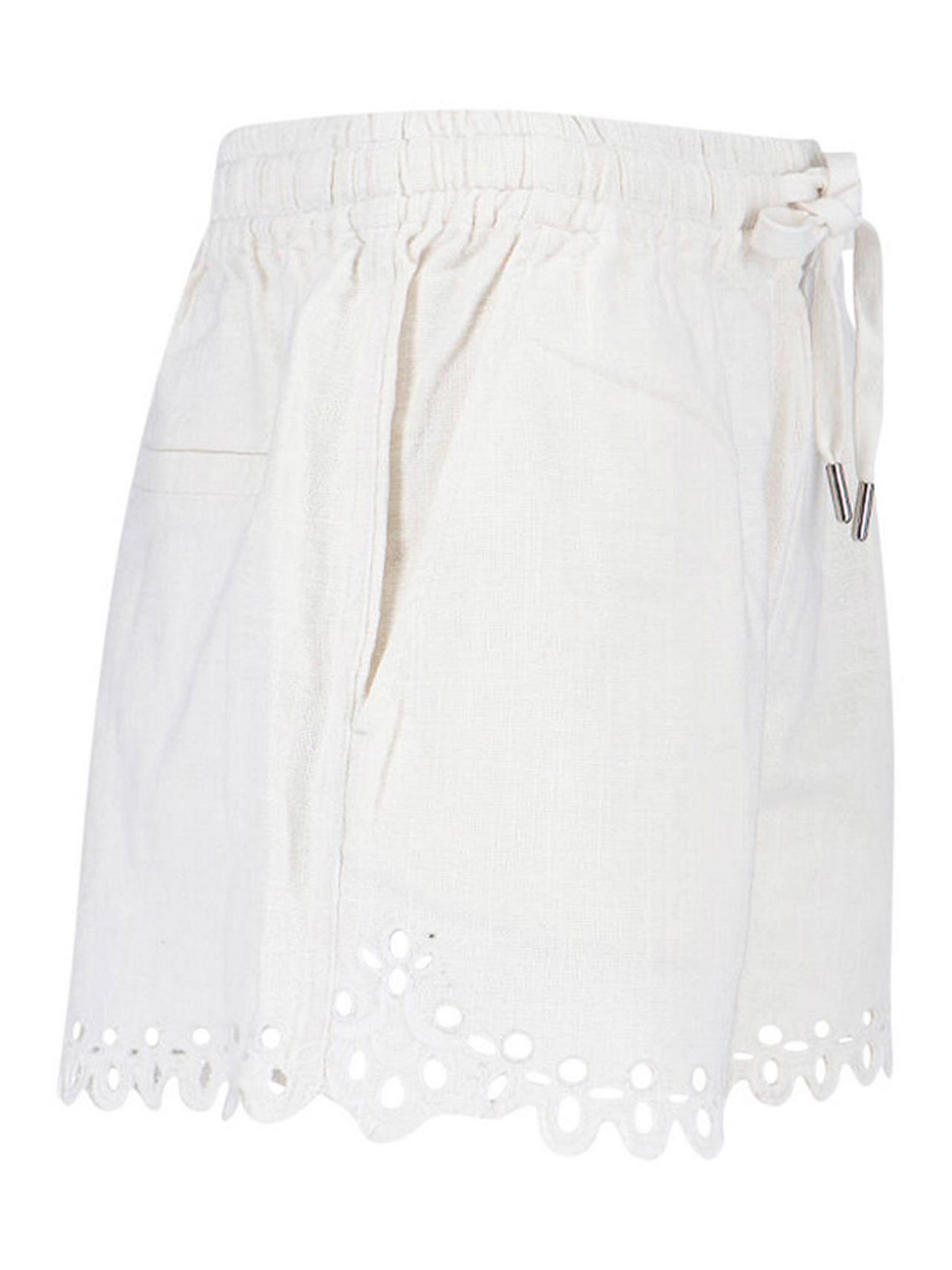 Balyme Isabel Marant toile shorts, in white cotton, elasticated mid-waist, lace-up closure, two side pockets, one flat back pocket, cut-out details on the bottom, straight leg.